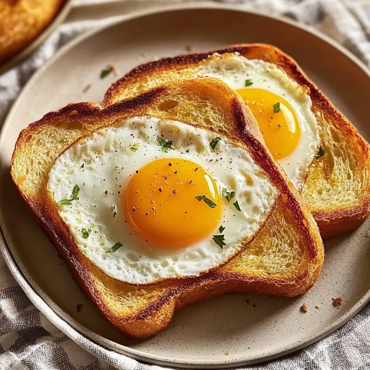 - Carefully remove the Air Fryer Egg Toast and garnish with fresh herbs or toppings before serving.