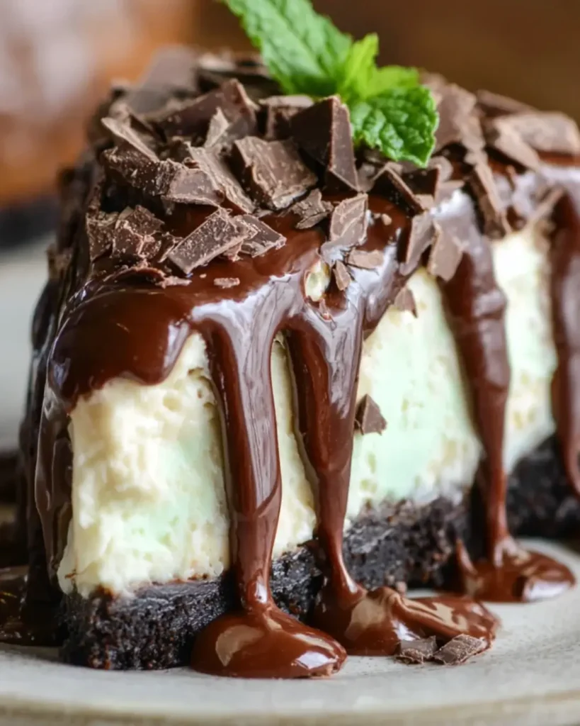 A delicious and decadent dessert that combines creamy cheesecake with the refreshing flavor of mint.