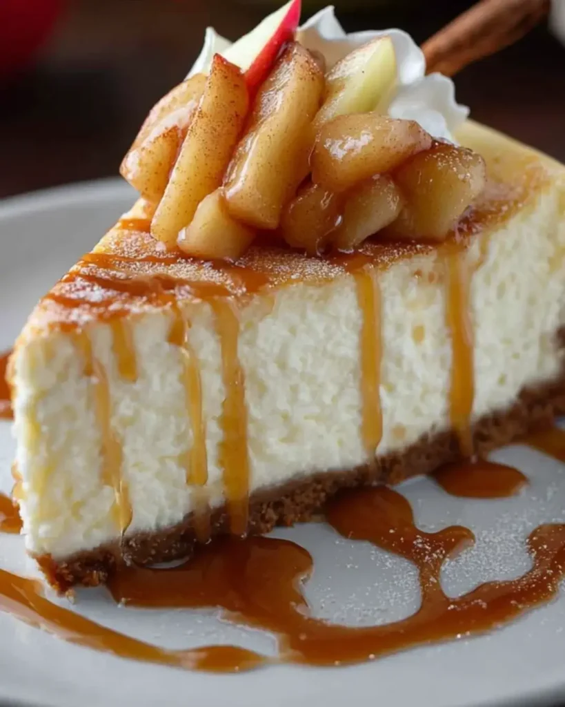 A delicious fall dessert recipe featuring creamy cheesecake infused with apple cider and warm spices.