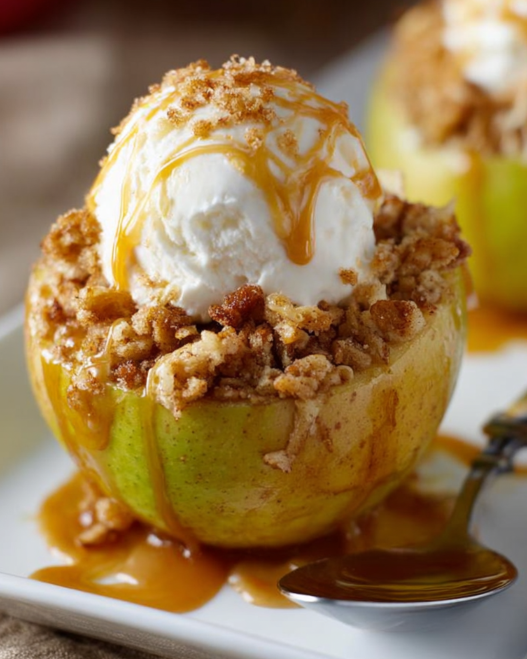 These stuffed apples pair wonderfully with vanilla ice cream, whipped cream, or a drizzle of caramel sauce. A hot cup of spiced cider or coffee also complements the flavors beautifully.