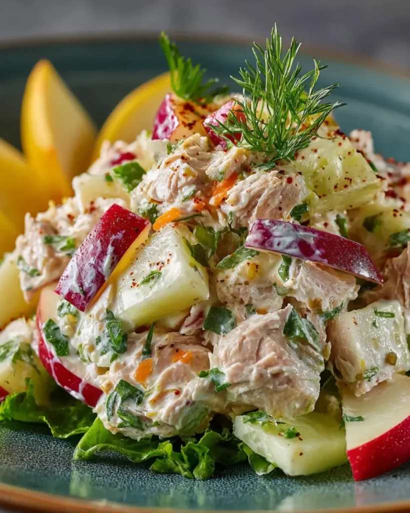 A refreshing and nutritious Apple Tuna Salad that combines the flavors of tuna, crisp apples, and crunchy vegetables, perfect for a light meal or snack.