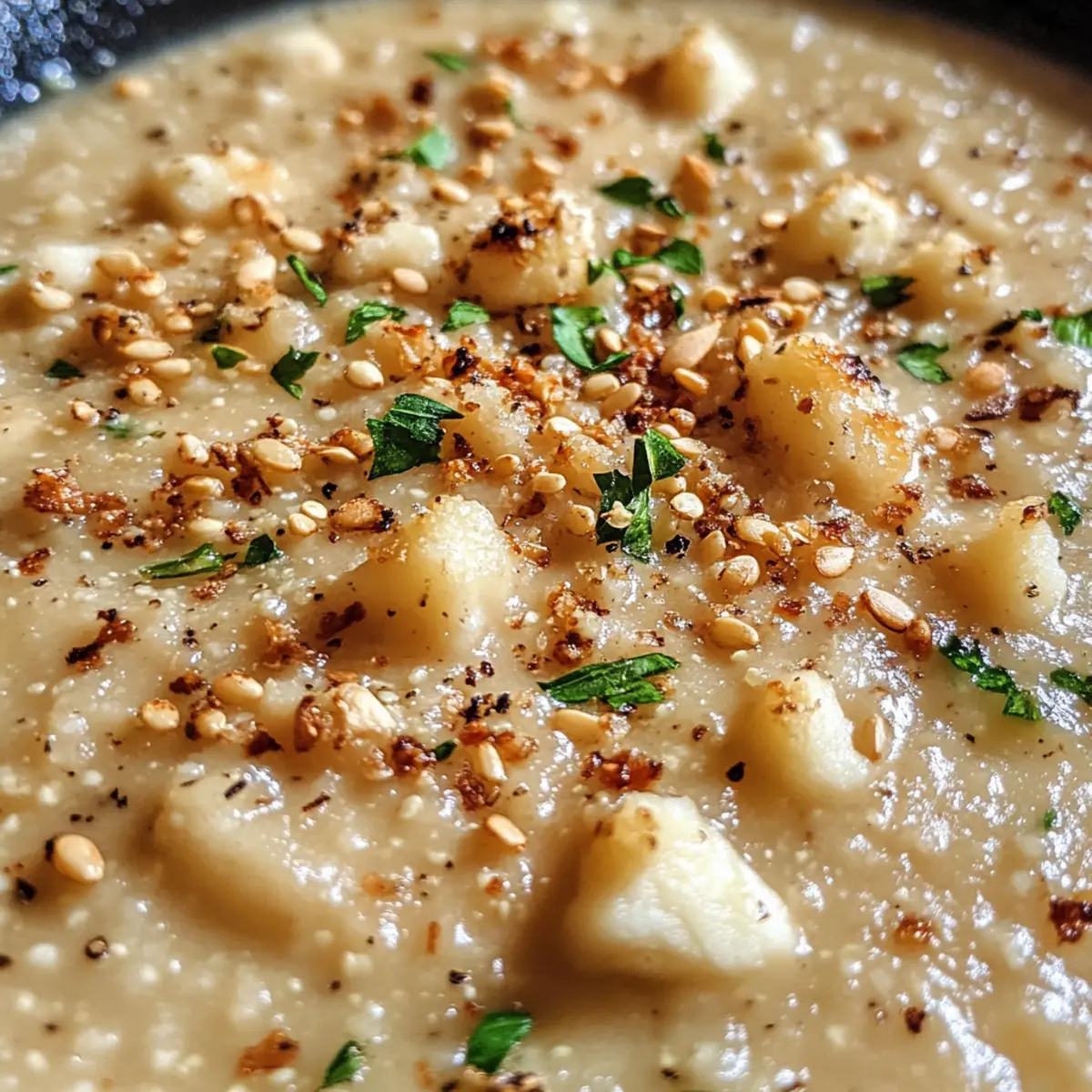 Creamy Asiago Roasted Garlic Cauliflower Soup Bliss