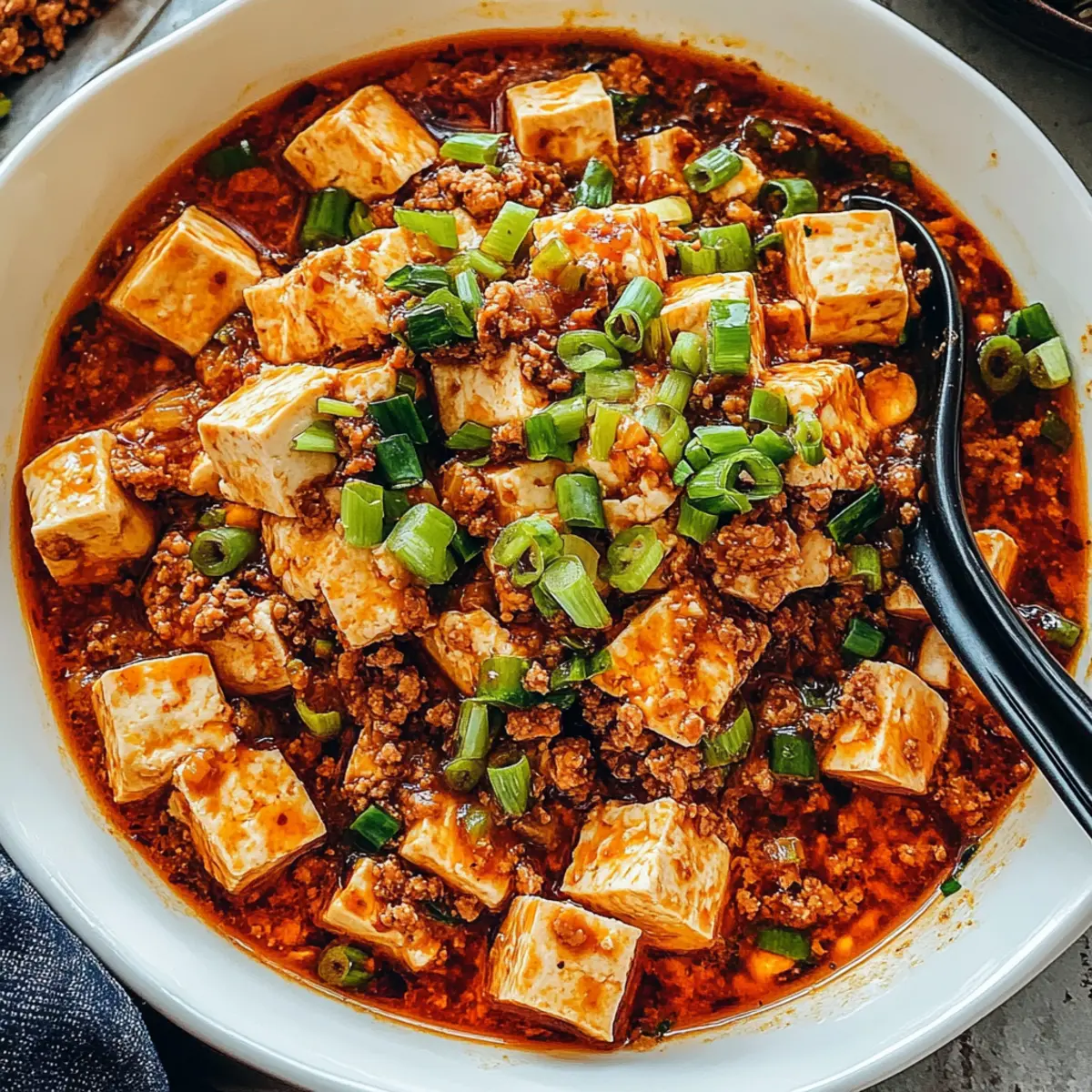 As I walked through a bustling market in Chengdu, the air was alive with the intoxicating aroma of sizzling spices and savory delights. Inspired by the vibrant heart of Sichuan cuisine, I found myself craving a comforting plate of Authentic Mapo Tofu. This dish perfectly combines tender tofu with a fiery, umami-rich bean sauce, making it an ideal choice for a quick weeknight dinner that doesn’t sacrifice flavor. Not only is it a satisfying option for vegetarians, but it also offers versatility with easy swaps for meat and different types of tofu. The delightful combination of heat and texture invites you to dive in, savoring each bite over a bed of fluffy rice. Ready to spice things up in your kitchen? Let’s dive into this mouthwatering recipe together!