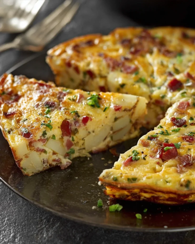 A delicious and easy recipe for Bacon and Potato Frittata, perfect for breakfast or brunch.