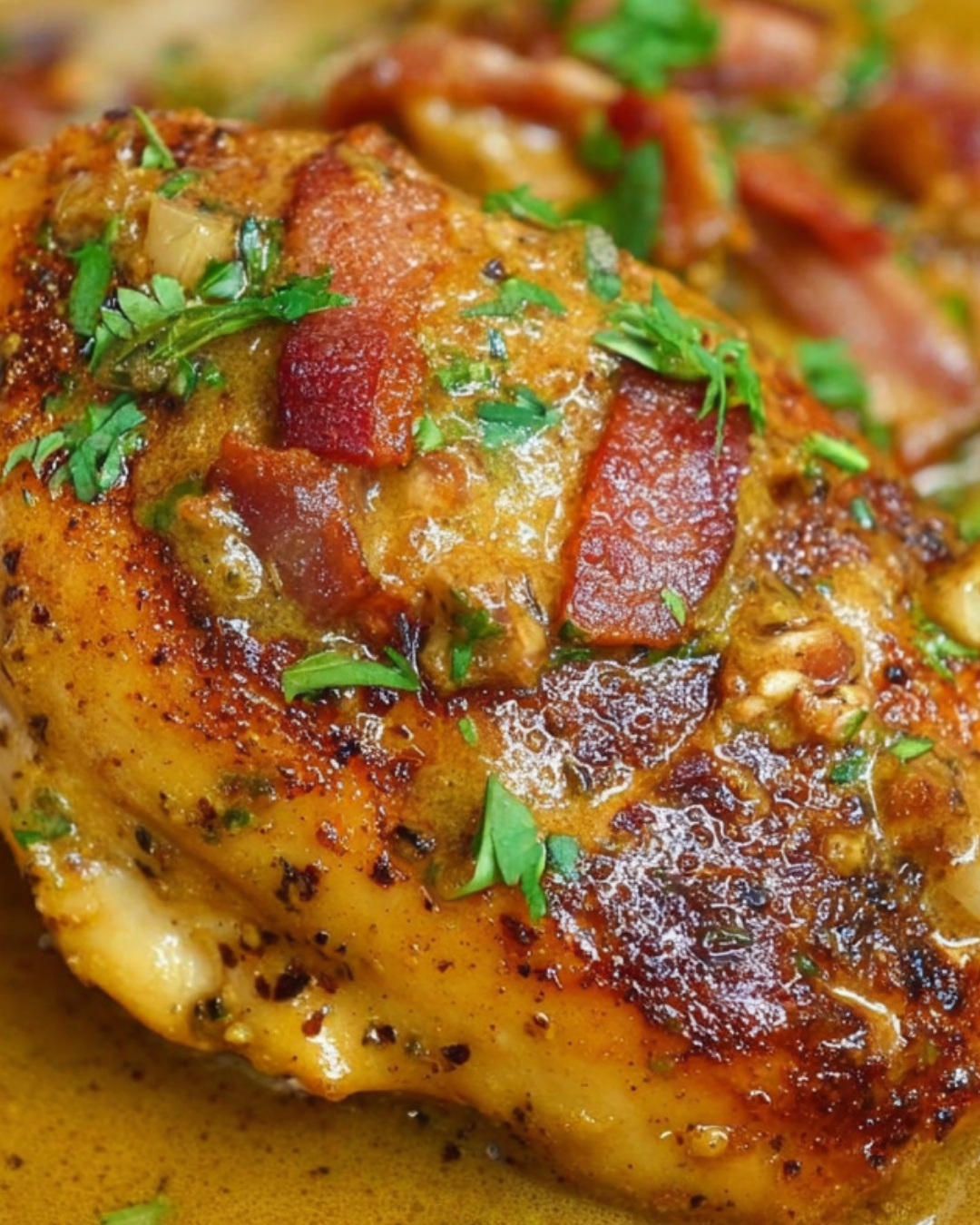 Once the chicken is out of the oven, let it rest for about 5 minutes. This resting period allows the juices to redistribute, making each bite tender and juicy. Before serving, garnish with chopped fresh parsley for a pop of color and freshness. Your Bacon Mustard Chicken is now ready to impress!