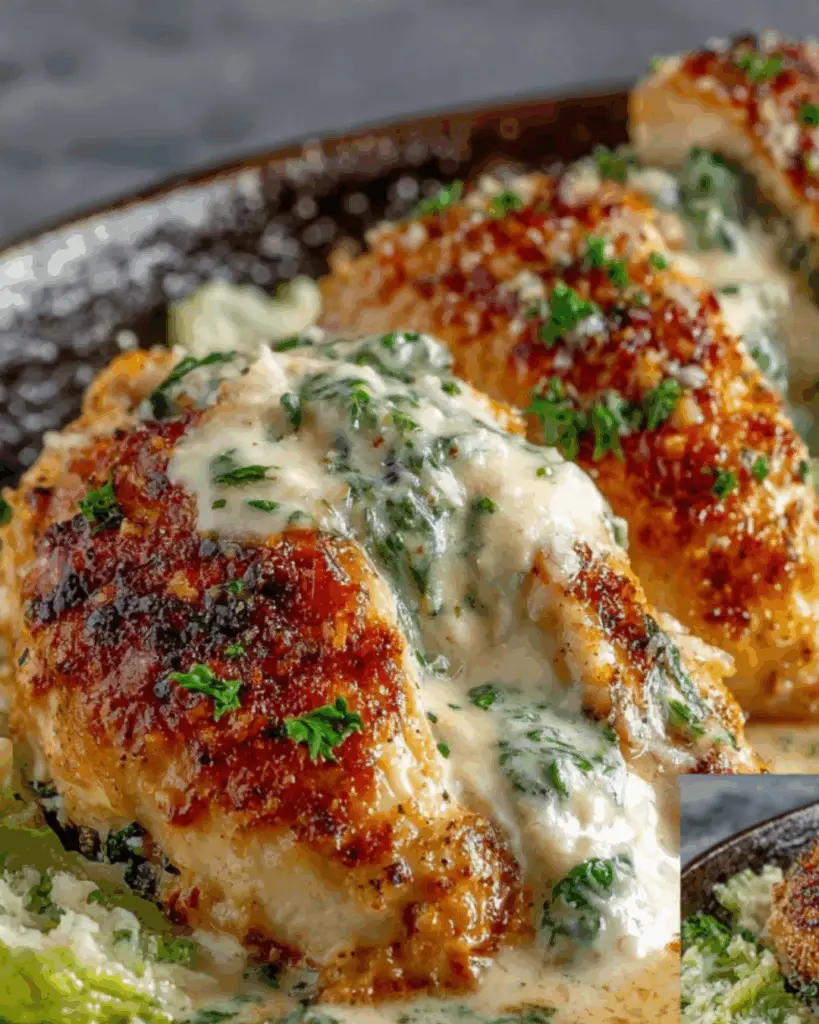 Baked Caesar Chicken is a delicious and easy-to-make dinner that combines the flavors of Caesar salad with tender chicken breasts, topped with a crispy breadcrumb and cheese crust.