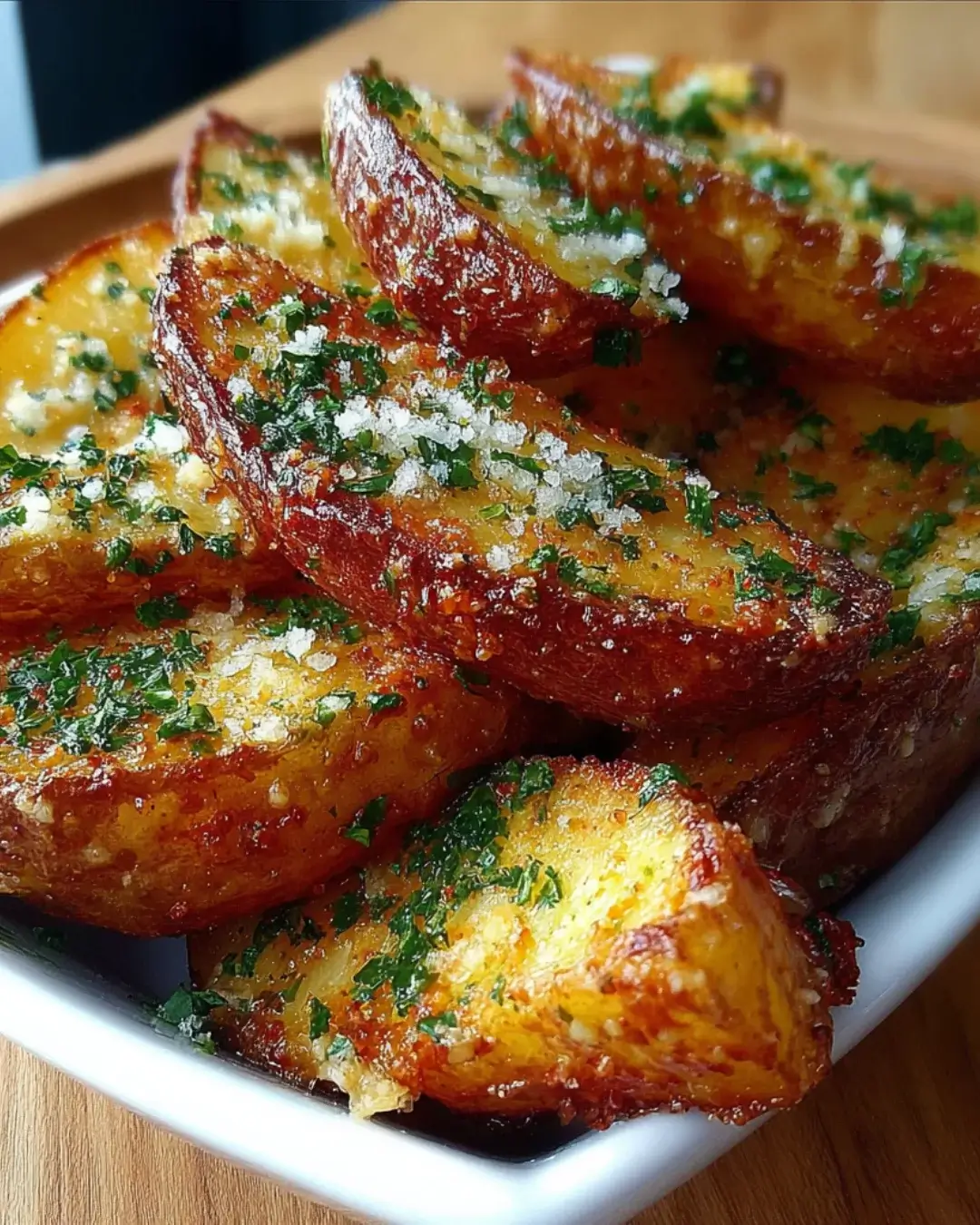 PrintBaked Garlic Parmesan Potato Wedges You’ll Love Today!