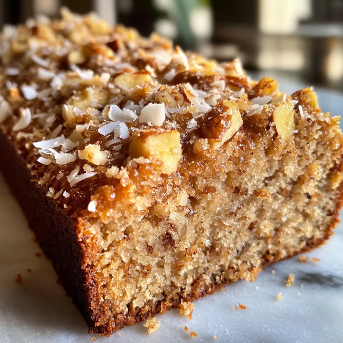 - Let the bread cool completely, then sprinkle with toasted coconut and slice to serve.