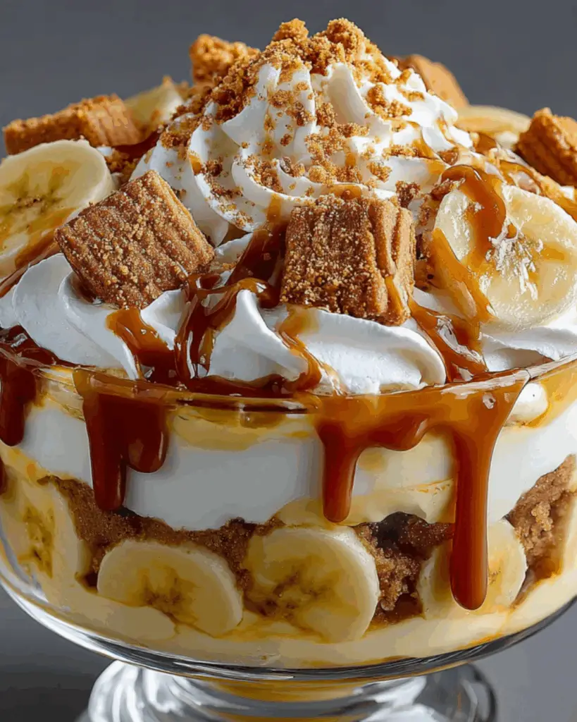 A creamy and delicious Biscoff Banana Pudding layered with caramel, perfect for dessert lovers.