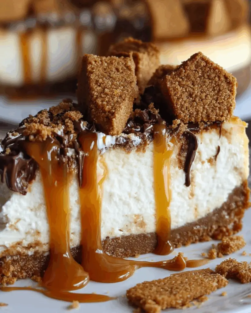 A delicious cheesecake with a Biscoff cookie crust, perfect for dessert lovers.