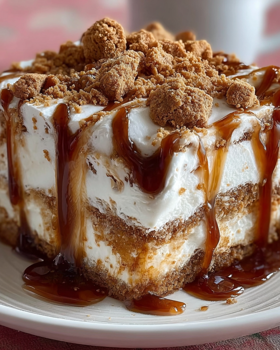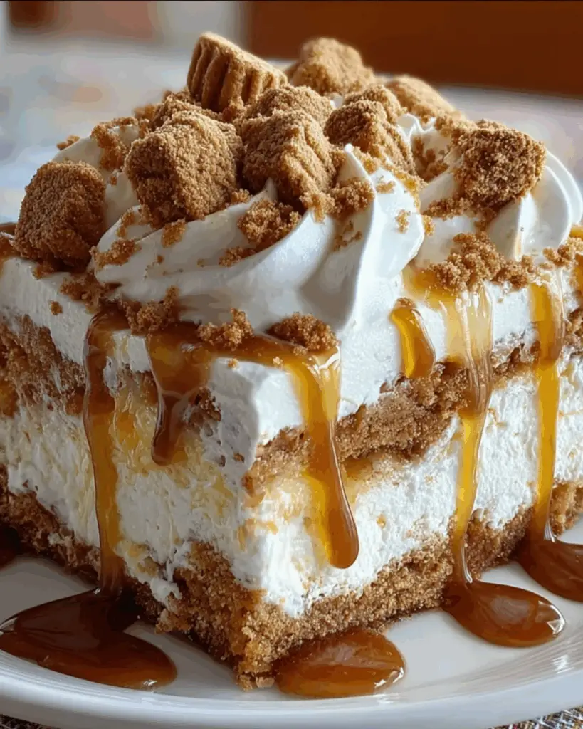 - Top with crushed Biscoff cookies for garnish. Slice and serve chilled.