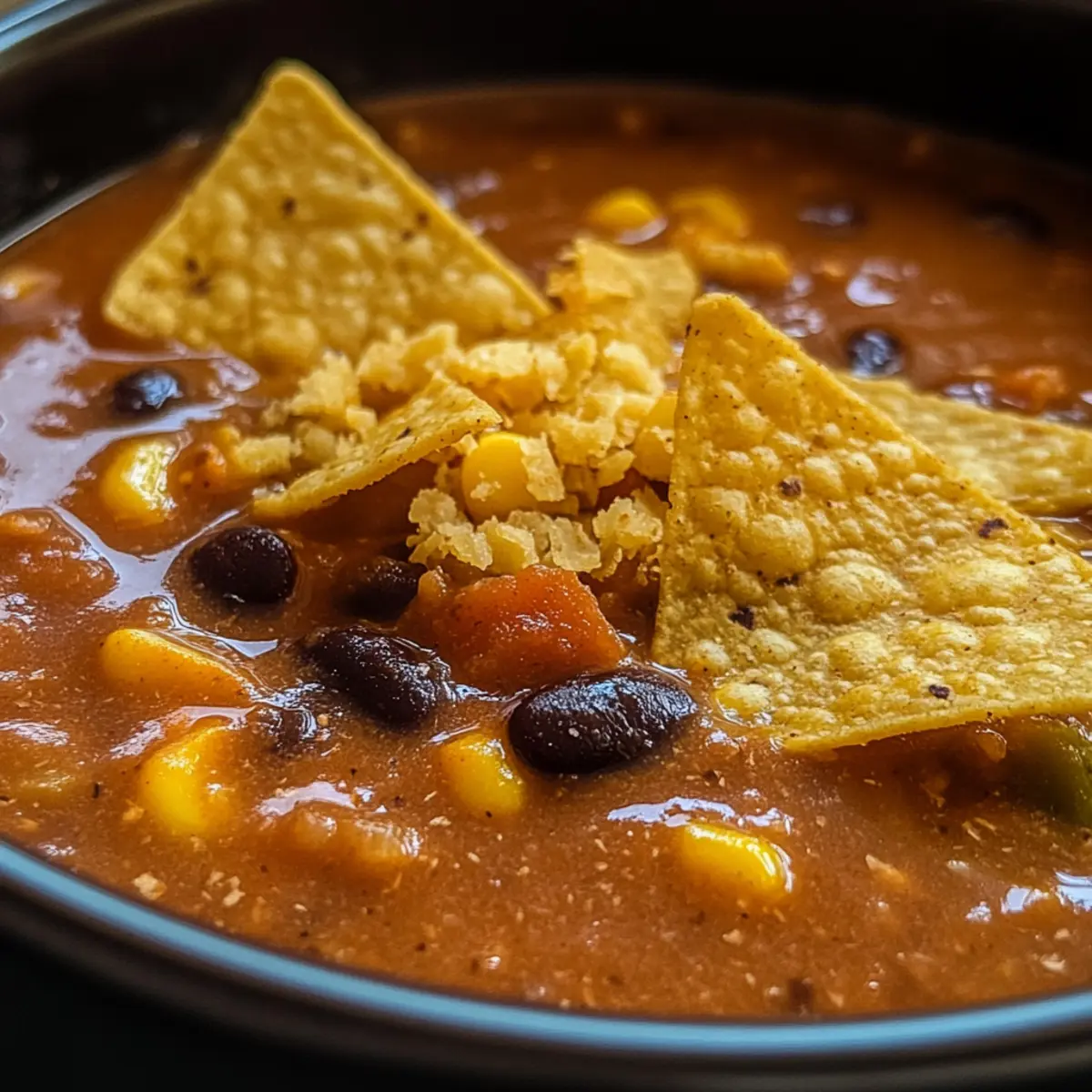 - Ladle the steaming soup into bowls and garnish with your favorite toppings, such as crushed tortilla chips or crumbled cornbread for texture. Serve hot.