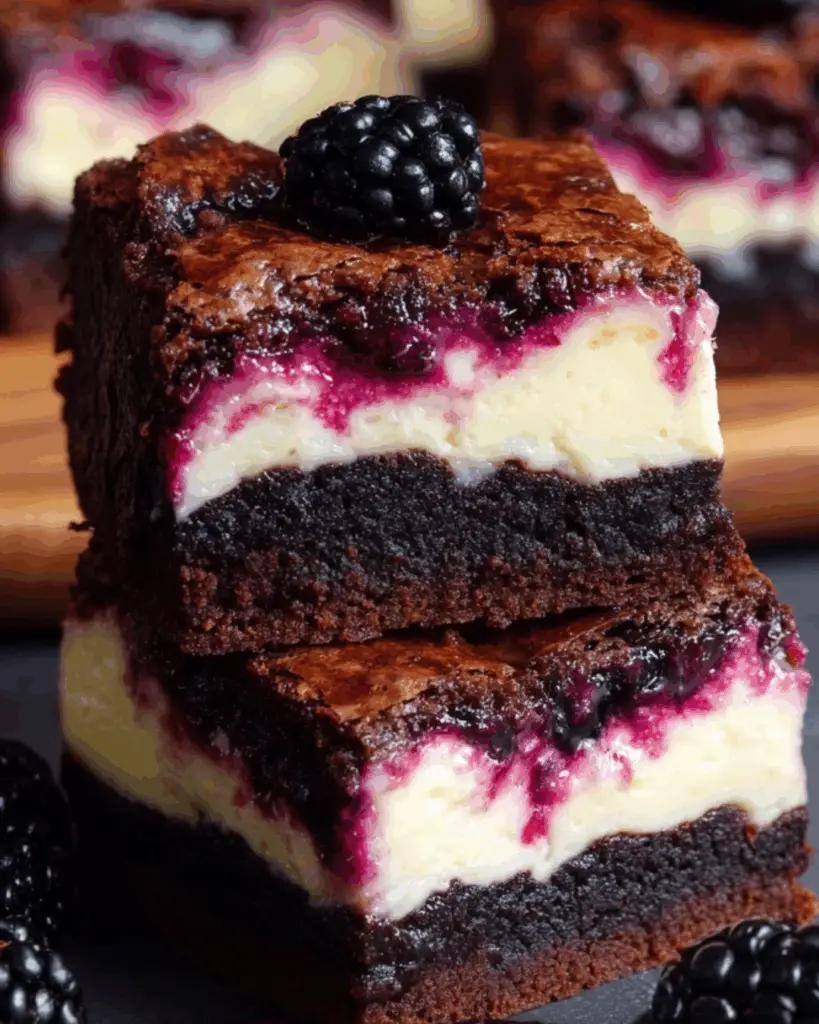 Deliciously rich brownies swirled with creamy cheesecake and topped with fresh blackberries.