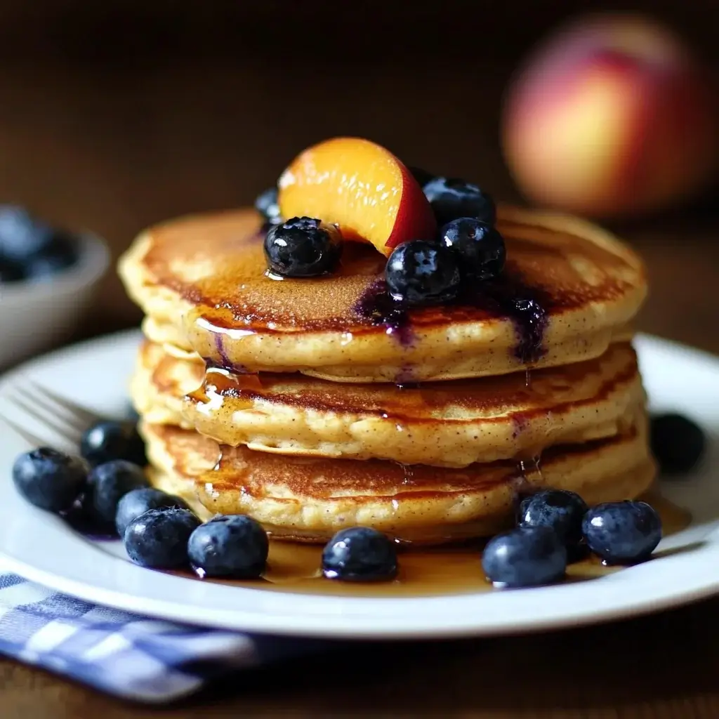 PrintBlueberry Peach Cornmeal Pancakes: A Tasty Morning Treat!