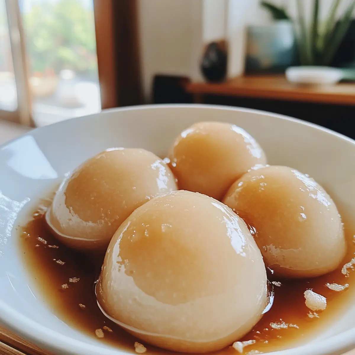 - Serve the syrup-coated rice balls in bowls, ladling some syrup over the top. Enjoy warm.