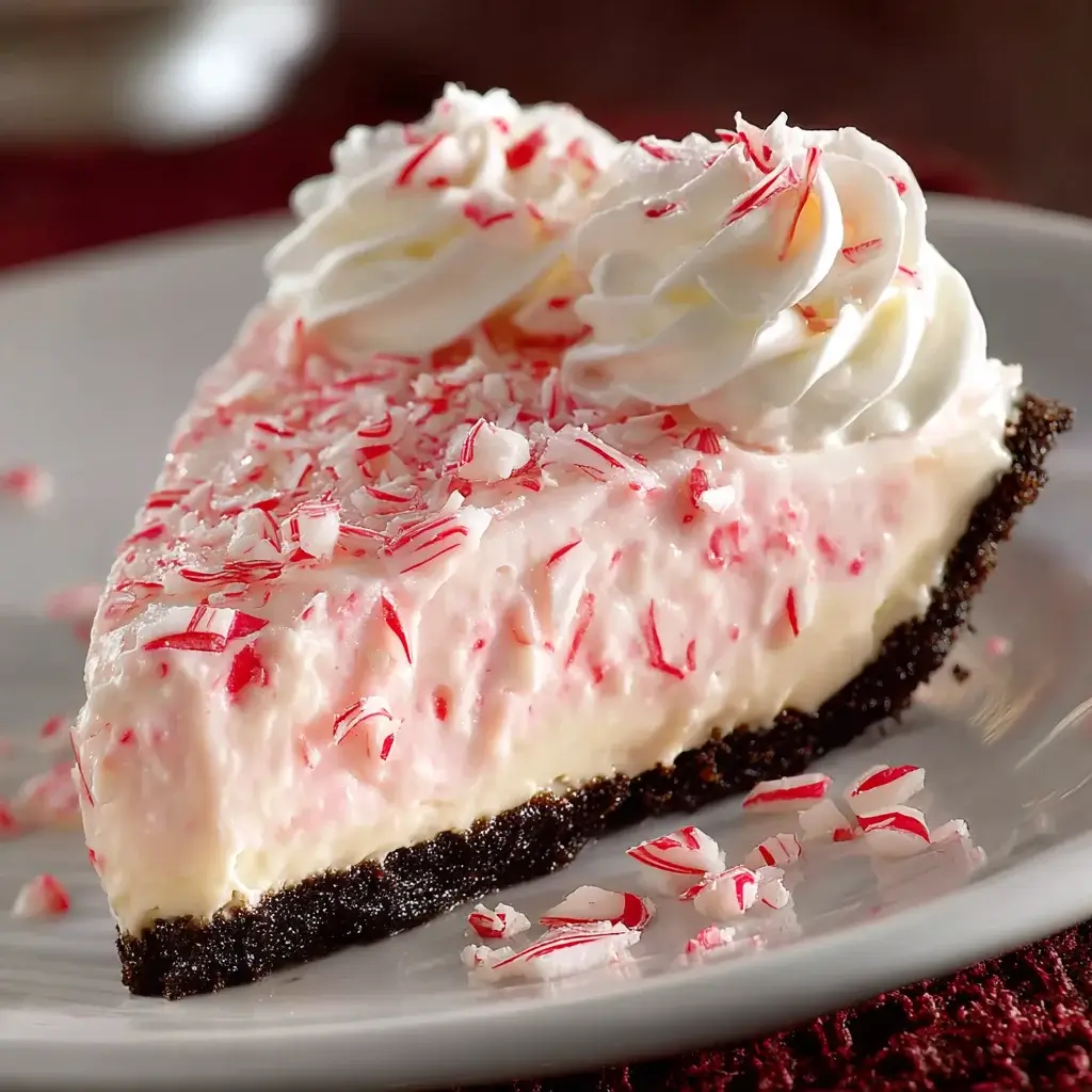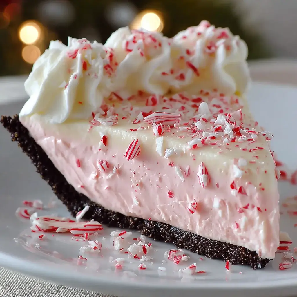 A festive and delicious Candy Cane Cream Pie perfect for holiday gatherings.