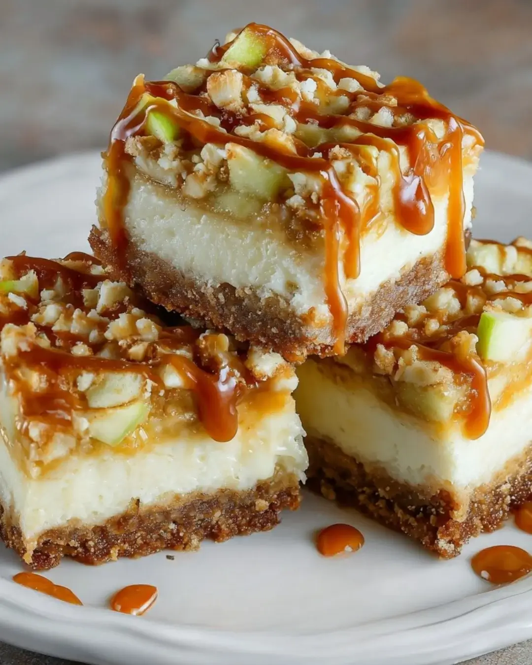Each bite offers a delightful blend of creamy cheesecake, tender apples, and that irresistible caramel drizzle.