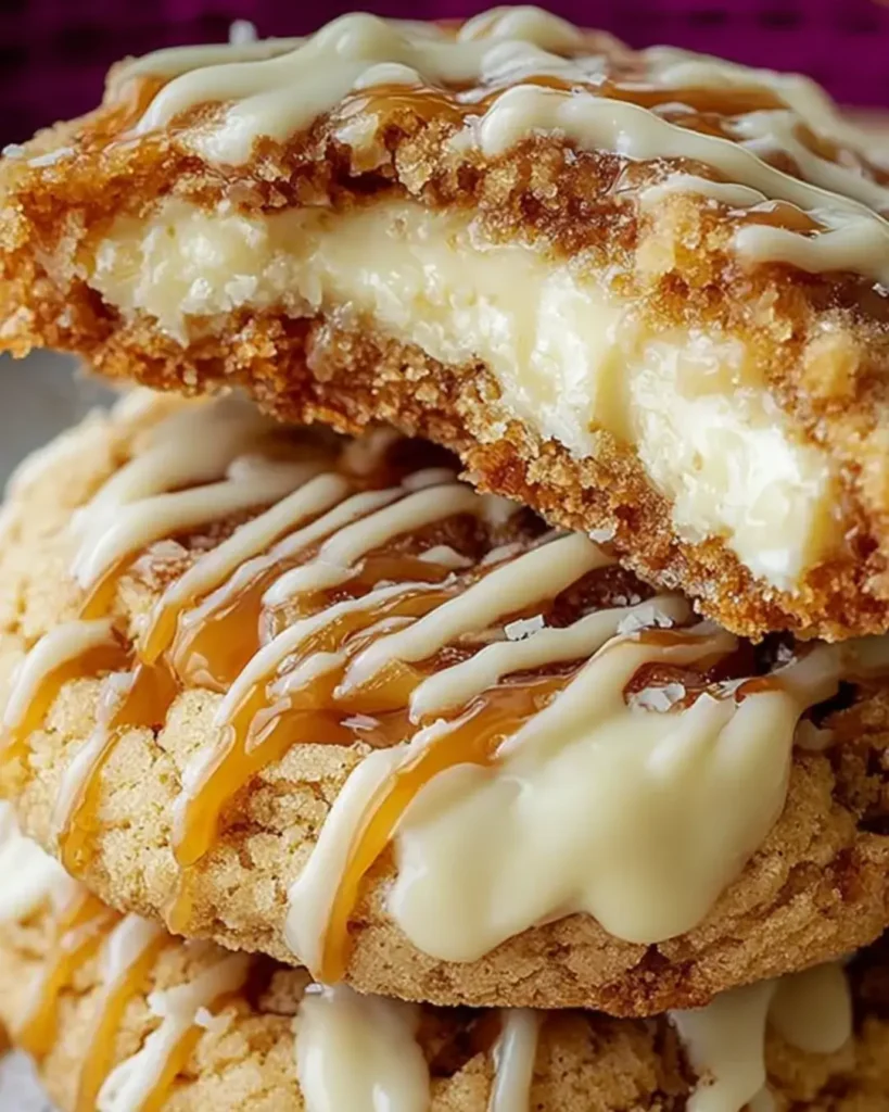 Once baked, allow the cookies to cool on the baking sheet for about 5 minutes. This helps them set. Then, transfer them to a wire rack to cool completely. Don’t forget to drizzle with extra caramel sauce before serving—because who doesn’t love a little more caramel?