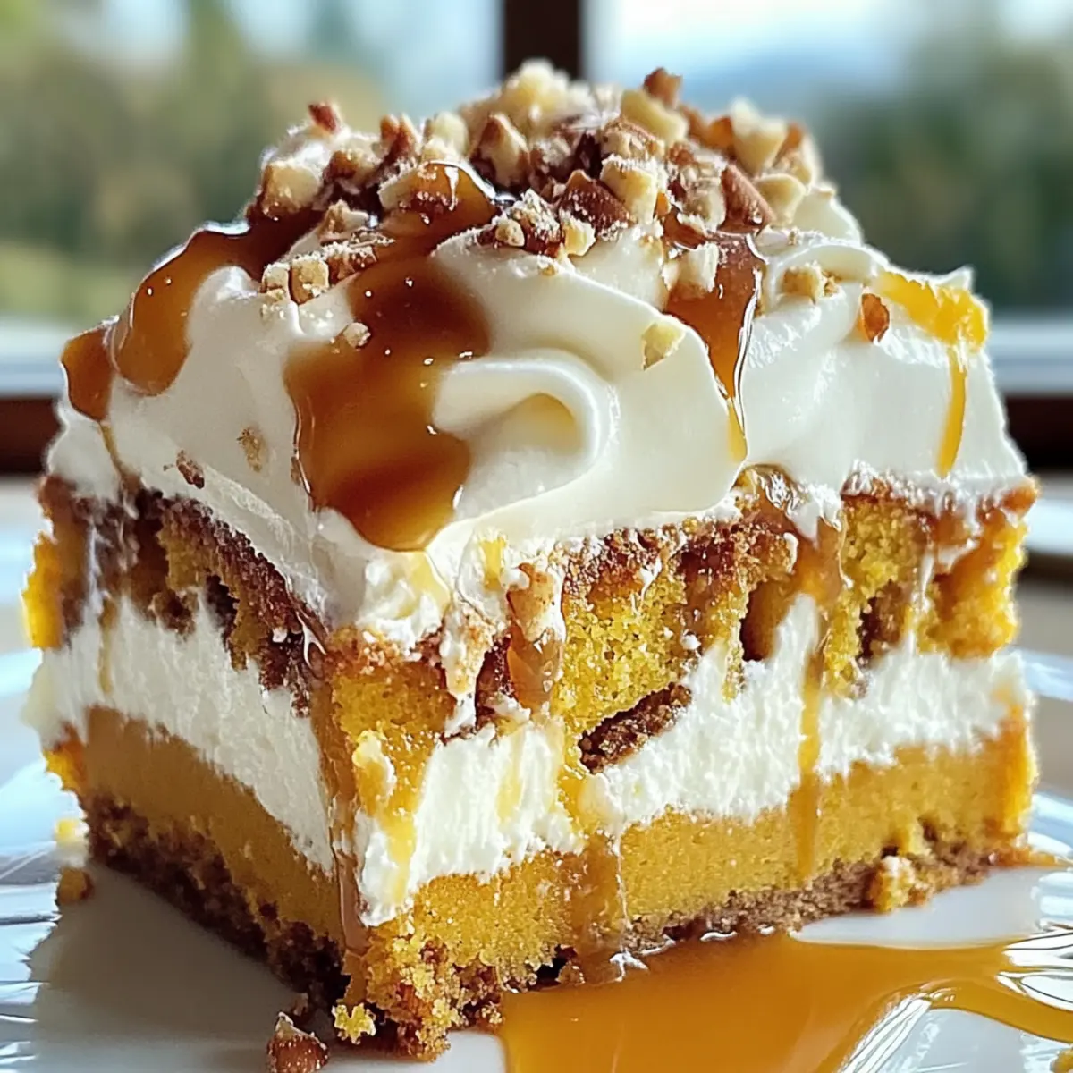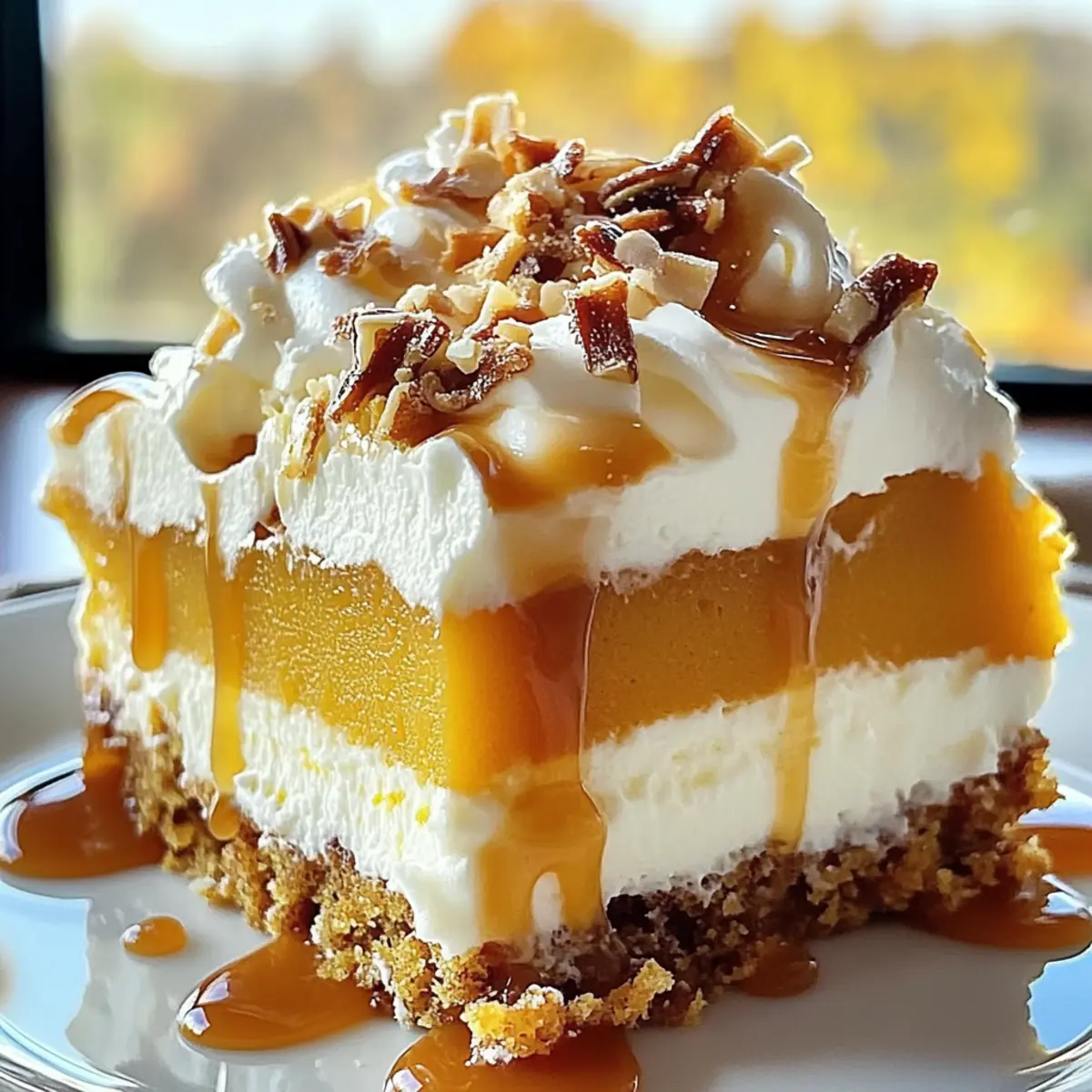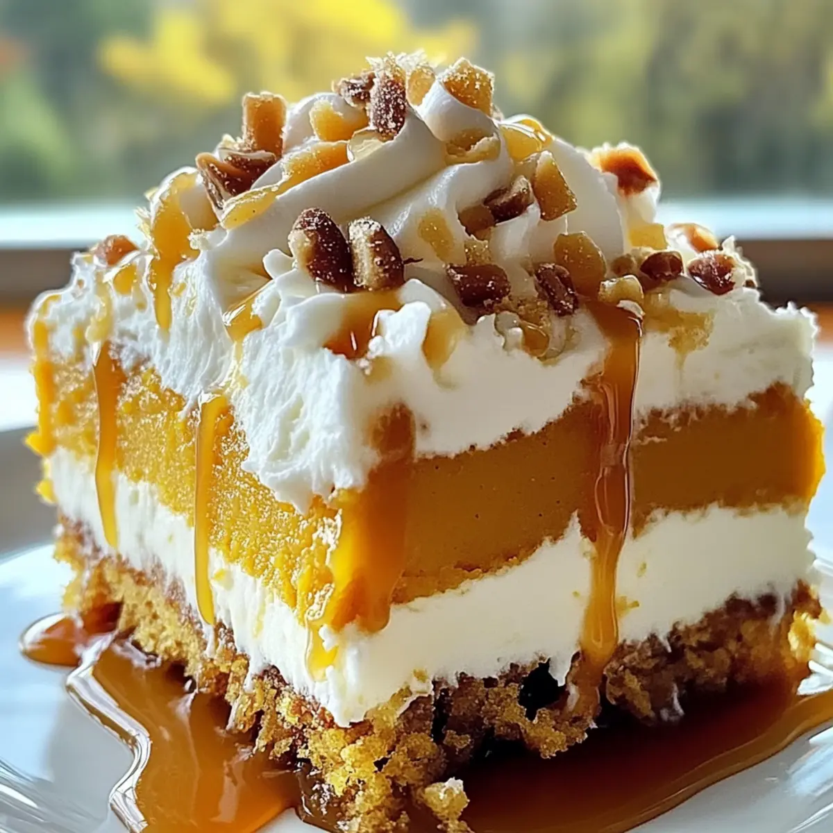 Impressive Presentation: Serve it chilled or at room temperature, topped with fluffy whipped cream and drizzled caramel for an eye-catching dessert that tastes as good as it looks—perfect for your fall festivities!