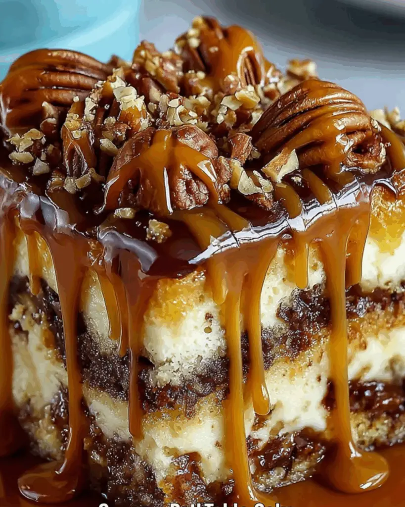 PrintCaramel Turtle Poke Cake: A Delicious Dessert Delight!