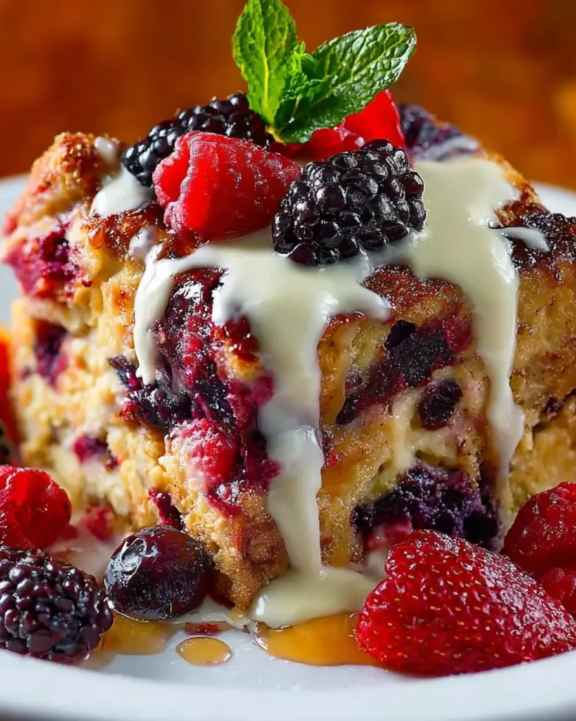 Wild Berry Bread Pudding Drizzled for a Sweet Treat!