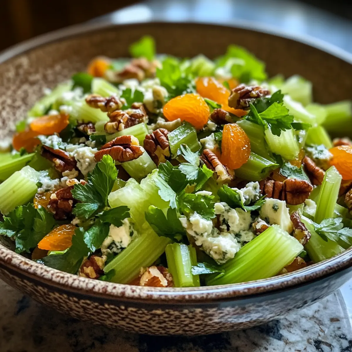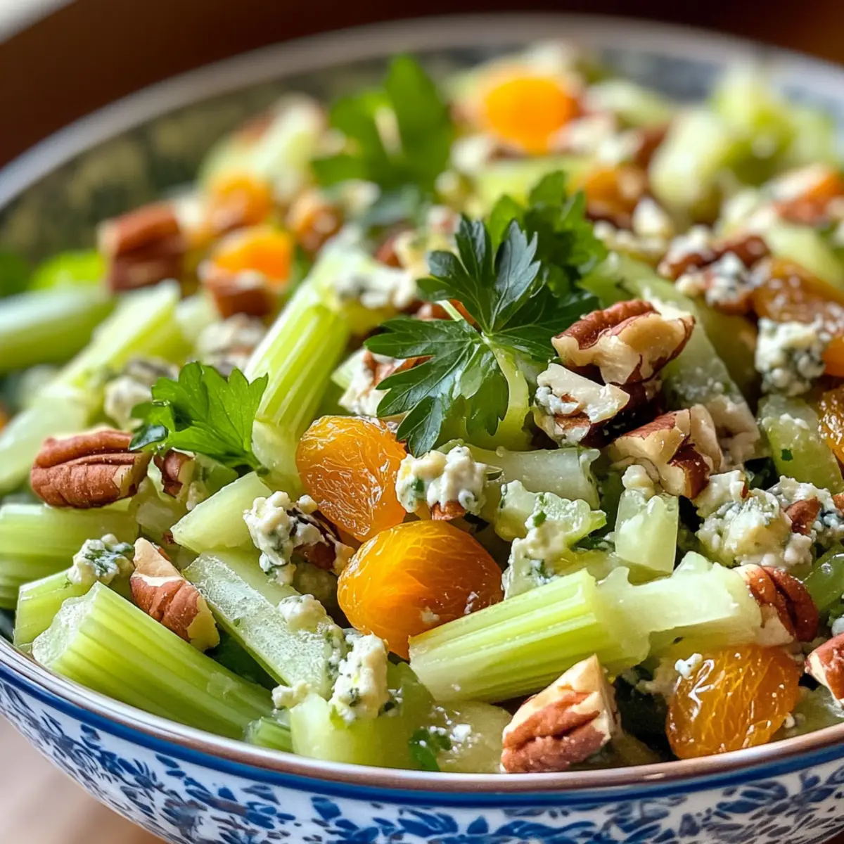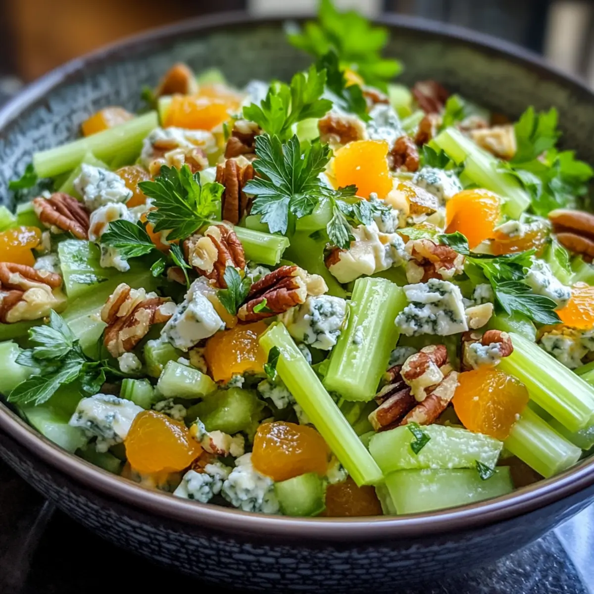 Celery Chopped Salad with Apricots, Gorgonzola, and Pecans Bliss