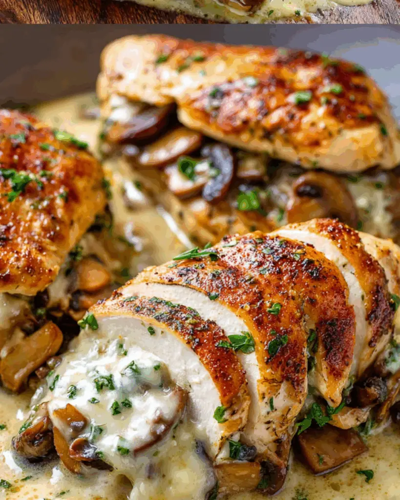PrintCheesy Garlic Butter Mushroom Stuffed Chicken Made Easy!