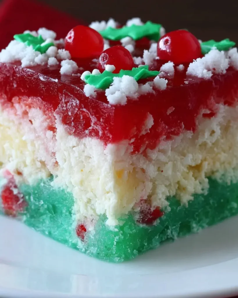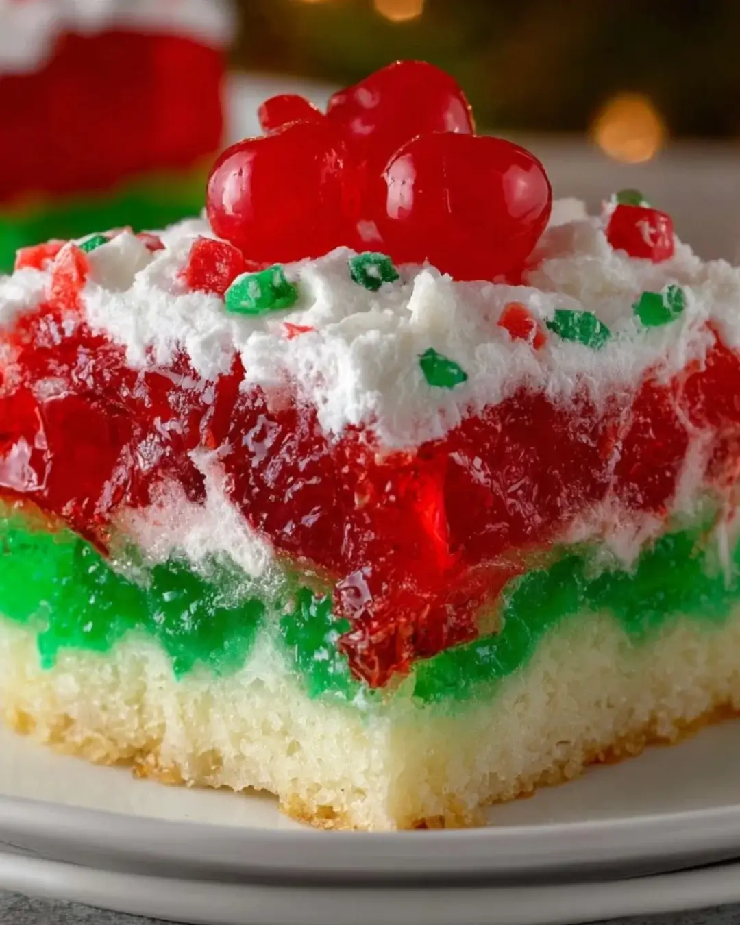 A festive and colorful Christmas Jello Poke Cake that will excite your holiday guests with its vibrant layers and delicious flavors.