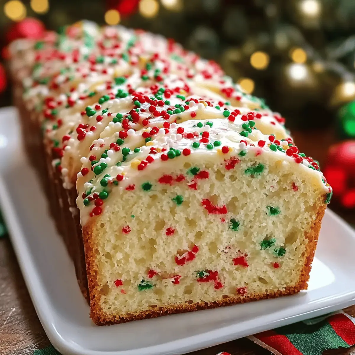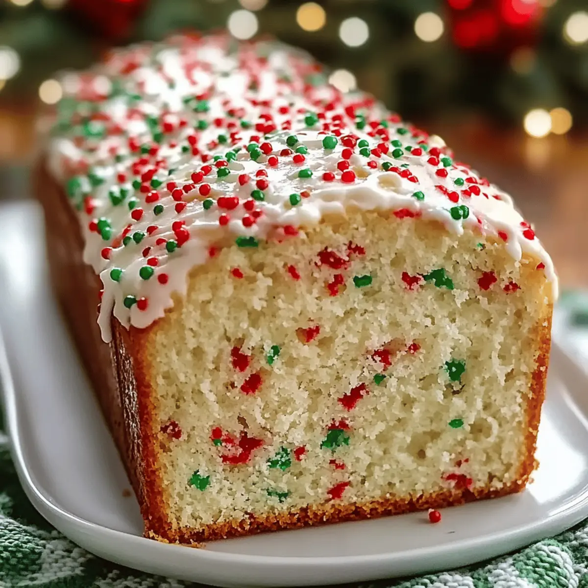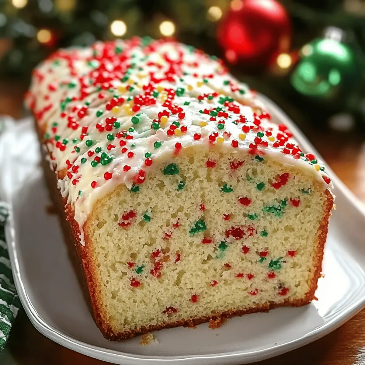 Festive Appeal: The bright red and green sprinkles transform an ordinary loaf into a cheerful centerpiece perfect for holiday gatherings.