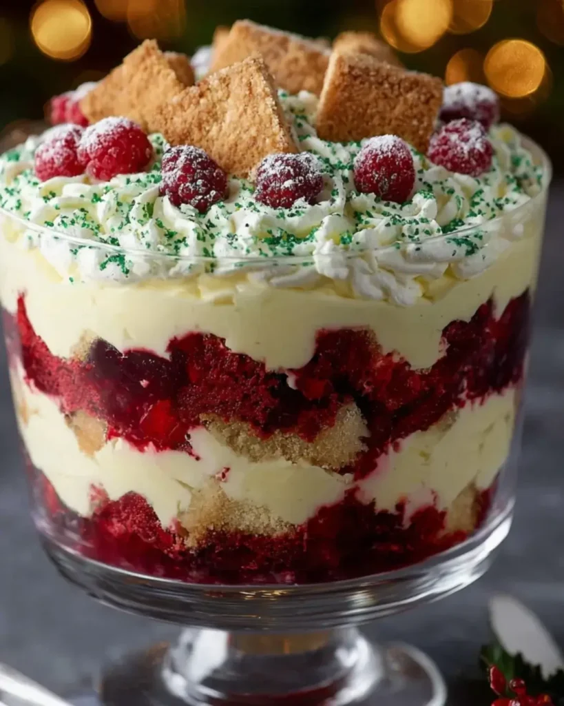 A festive and delicious Christmas Trifle Dessert that layers pound cake, mixed berries, whipped cream, and vanilla pudding, perfect for impressing guests during the holiday season.