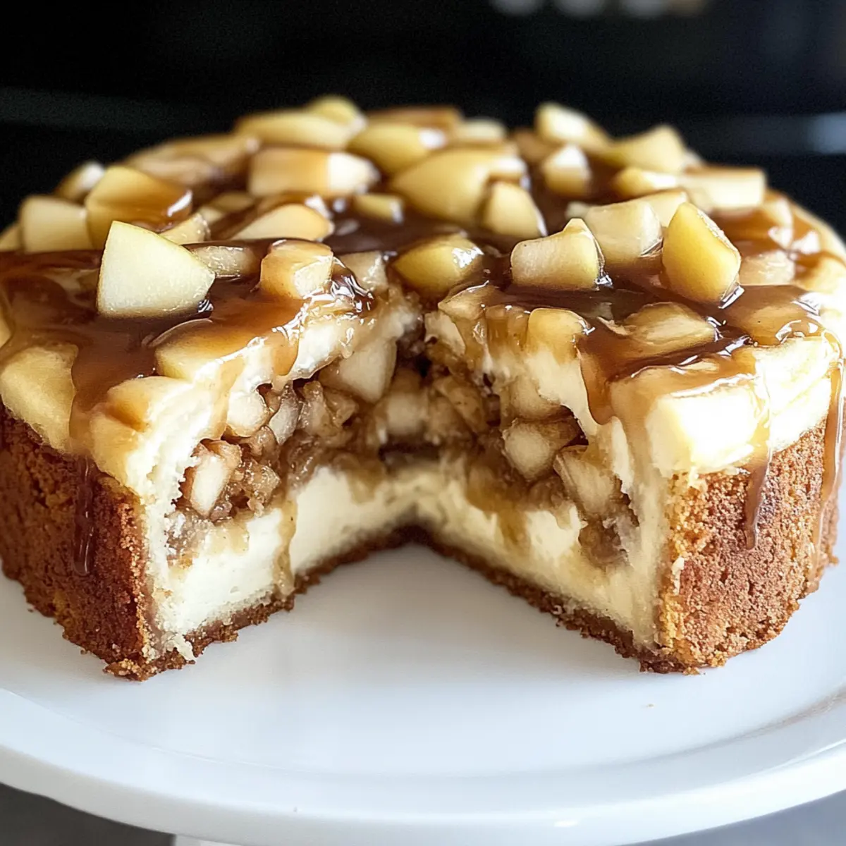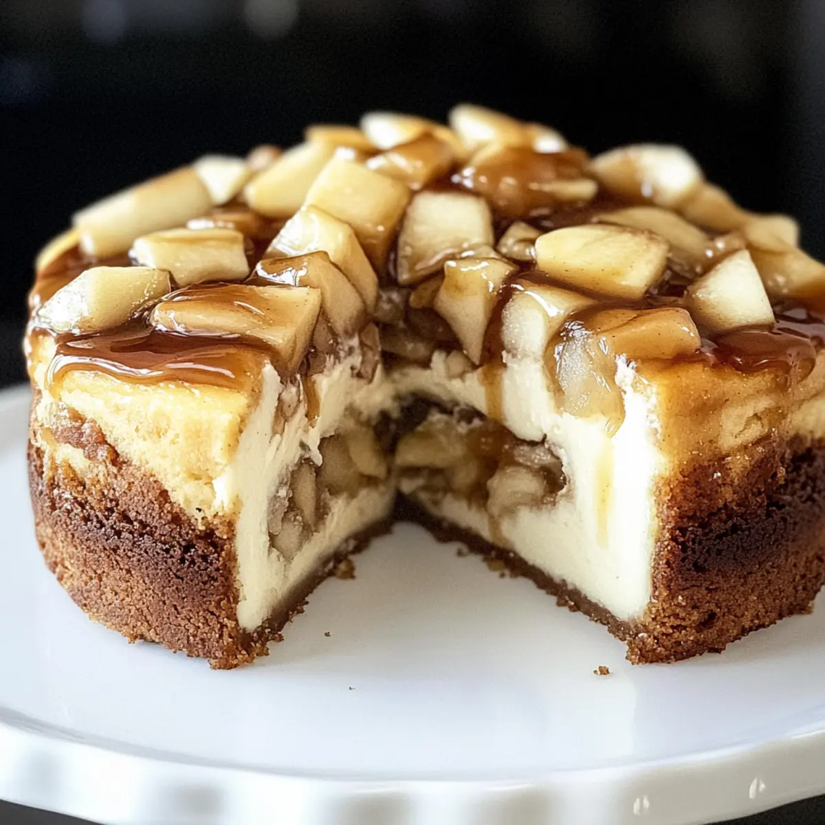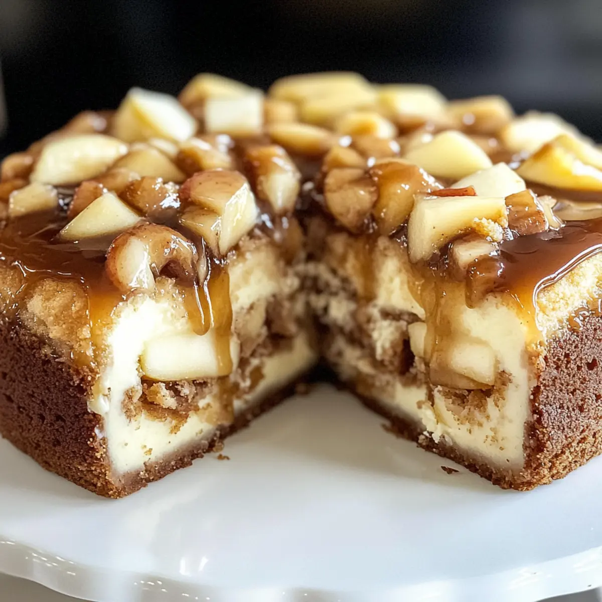 Visually Stunning: The layers of swirling batter and caramelized apples make this cheesecake not just delicious but a beautiful centerpiece for any dessert table.