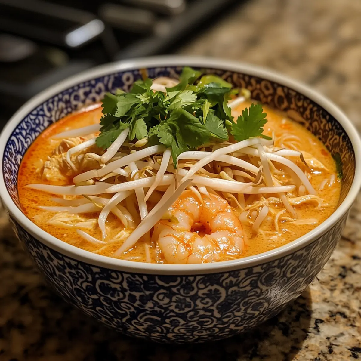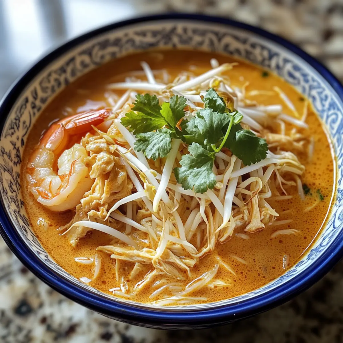 Curry Laksa Soup is an excellent choice for busy cooks looking to save time! You can prepare the laksa paste up to 3 days in advance, storing it in an airtight container in the refrigerator. Additionally, you can cook the shredded chicken ahead of time and keep it refrigerated for up to 3 days as well. To maintain quality, assemble the soup right before serving by heating the broth and adding the cooked rice noodles and shrimp—this ensures they remain perfectly cooked and not soggy. Just remember to add your fresh herbs and garnishes at the last minute for that vibrant freshness that makes this Curry Laksa so delightful!