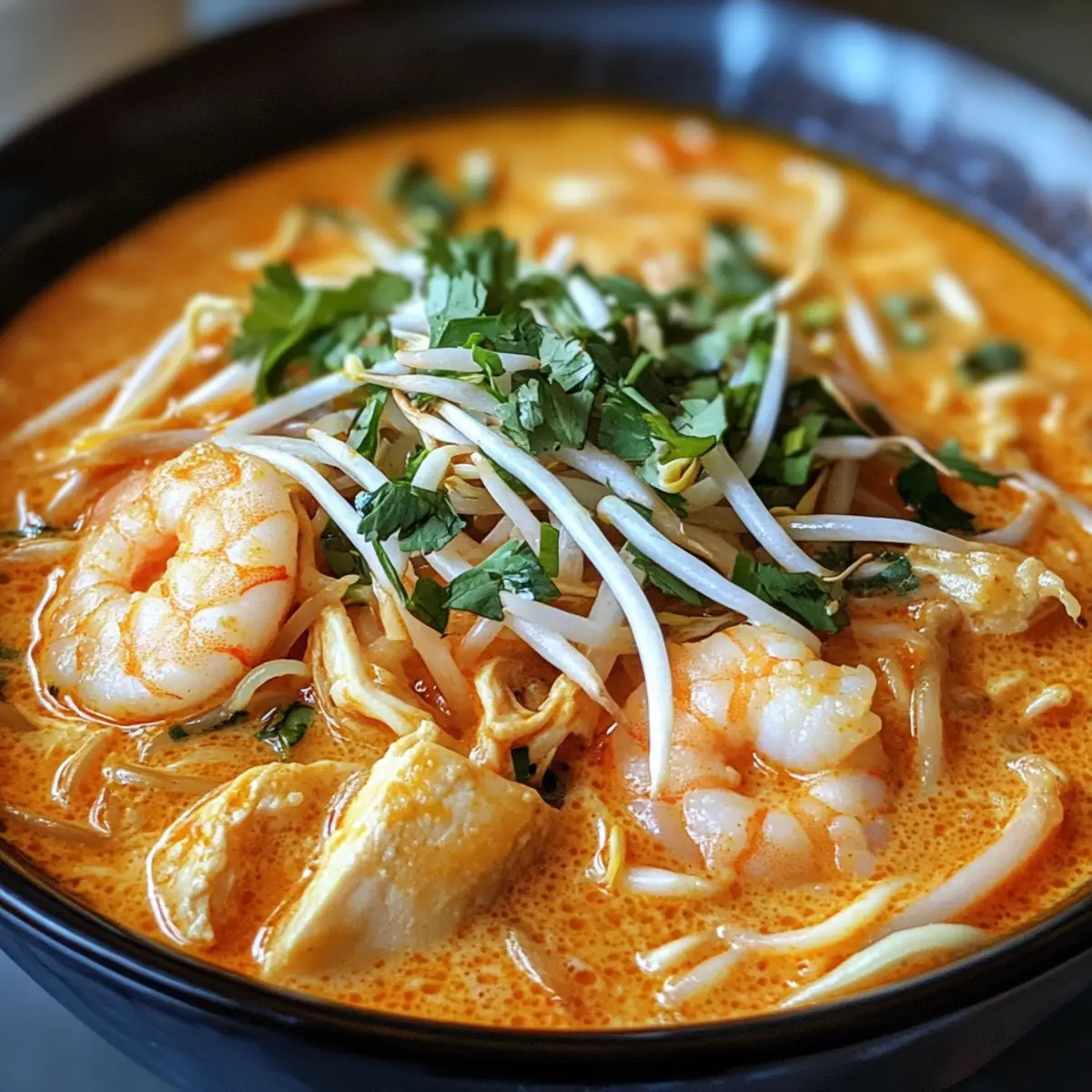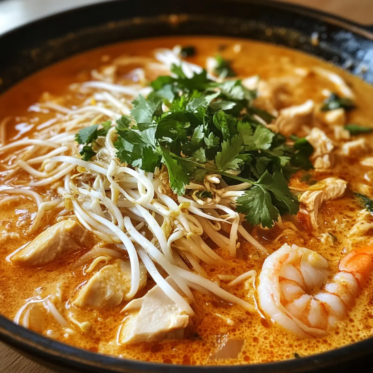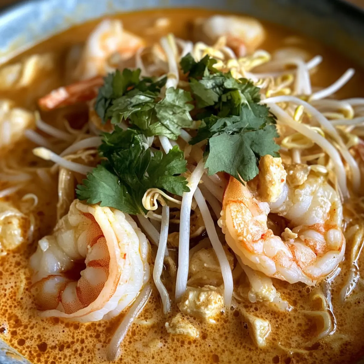 As I stirred the vibrant pot of Coconut Curry Soup with Rice Noodles, the warm aromas of ginger and lemongrass whisked me away to a bustling Malaysian market. This comforting bowl of Creamy Curry Laksa is a delightful embrace of rich coconut broth, tender chicken, succulent shrimp, and soft rice noodles, making it the ultimate comfort food. Not only is it easy to whip up on a busy weeknight, but it also reheats beautifully, allowing for delicious leftovers that taste just as good the next day. Plus, you can customize the spice level to suit every palate in your family. Are you ready to dive into this soul-warming dish that promises a culinary adventure right in your kitchen?