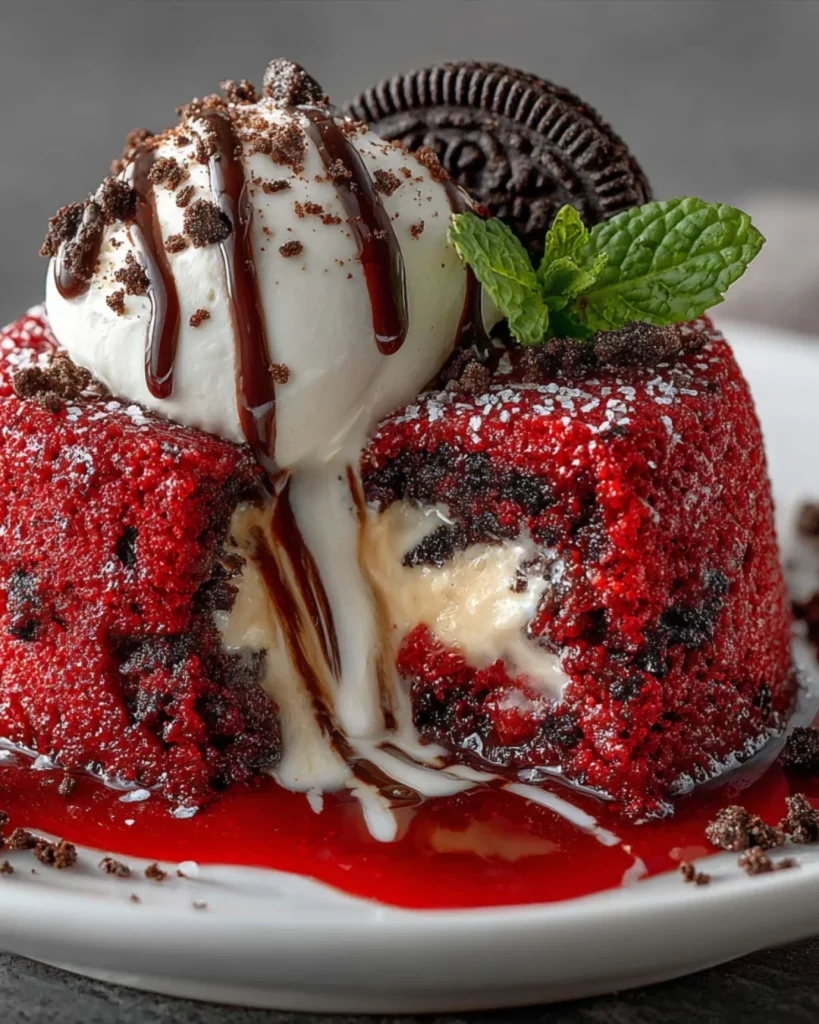 This Cookies & Cream Red Velvet Molten Lava Cake is a game-changer for dessert lovers.