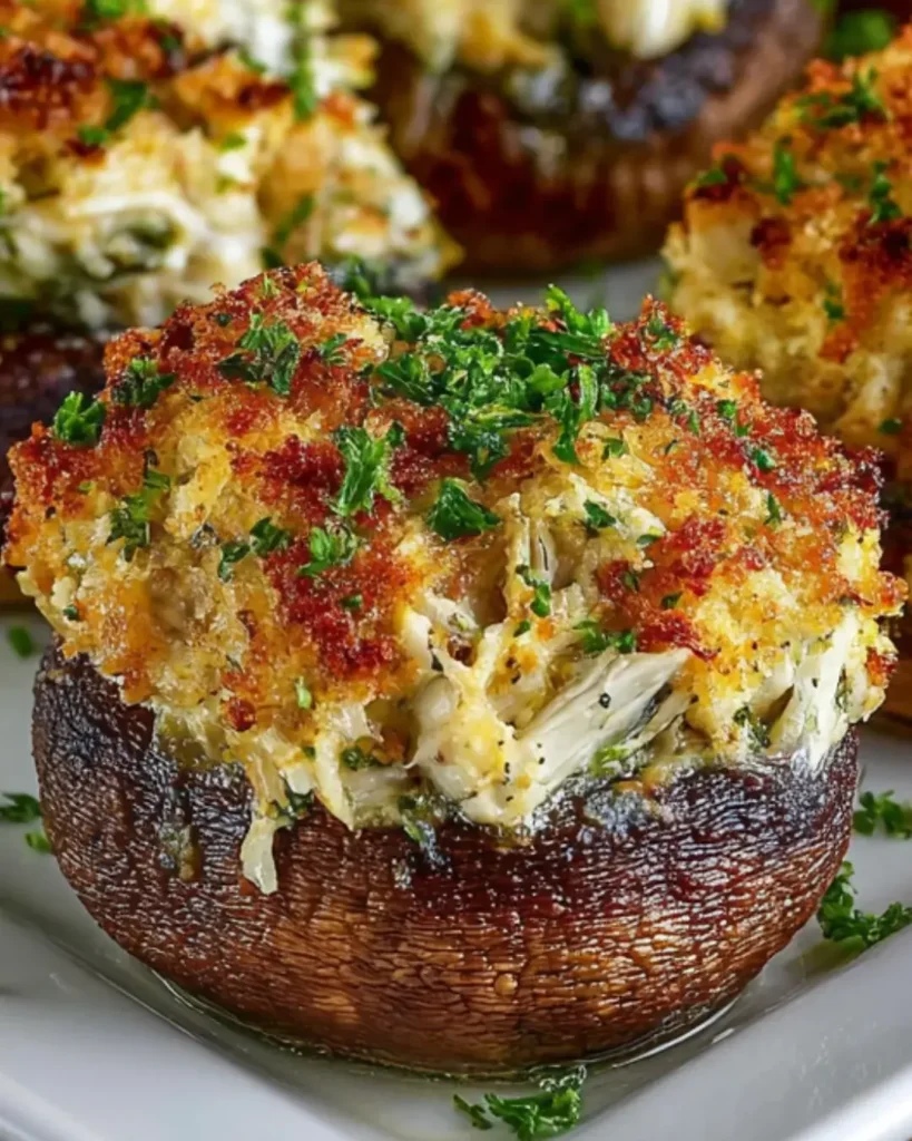 A delicious and easy recipe for crab stuffed mushrooms, perfect as an appetizer or party dish.
