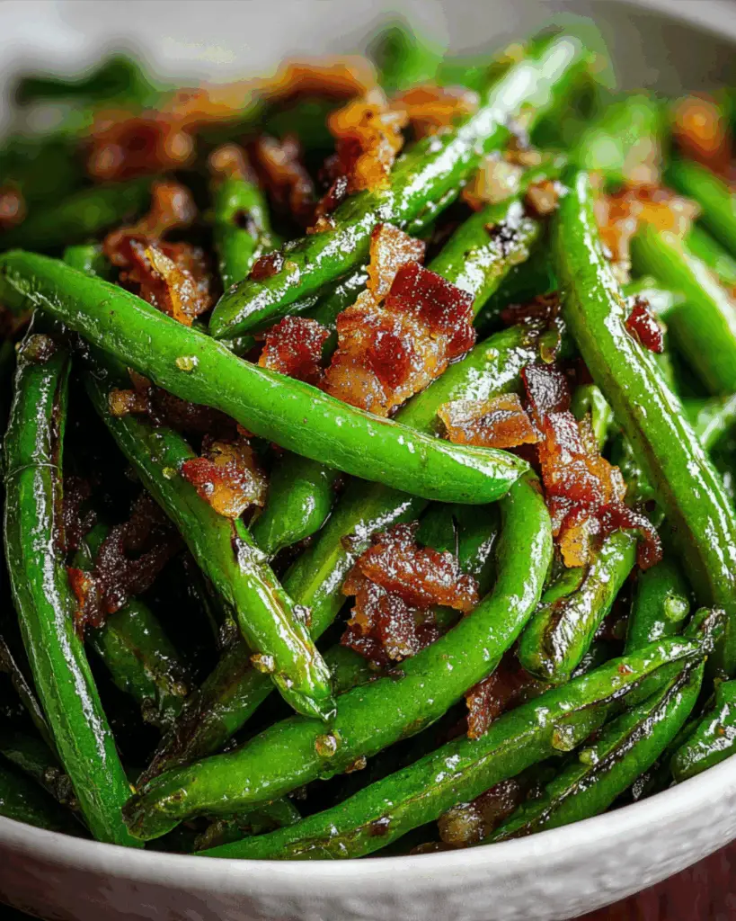 A delicious and flavorful side dish made with fresh green beans, bacon, and a blend of seasonings.