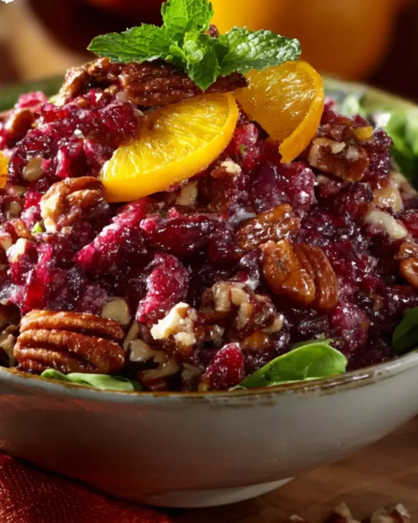 A refreshing and delightful Cranberry Salad with Fresh Orange and Pecan that tantalizes your taste buds with its sweet and tangy flavors.