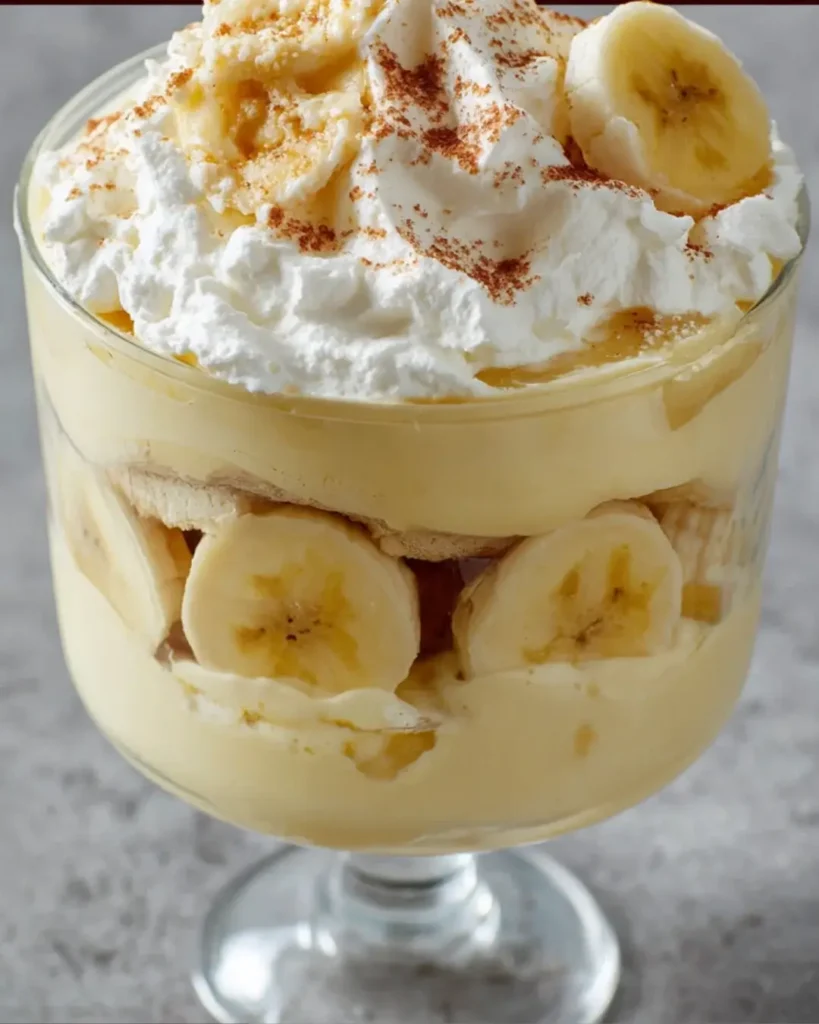- Repeat the layers with the remaining bananas, pudding, and whipped topping.