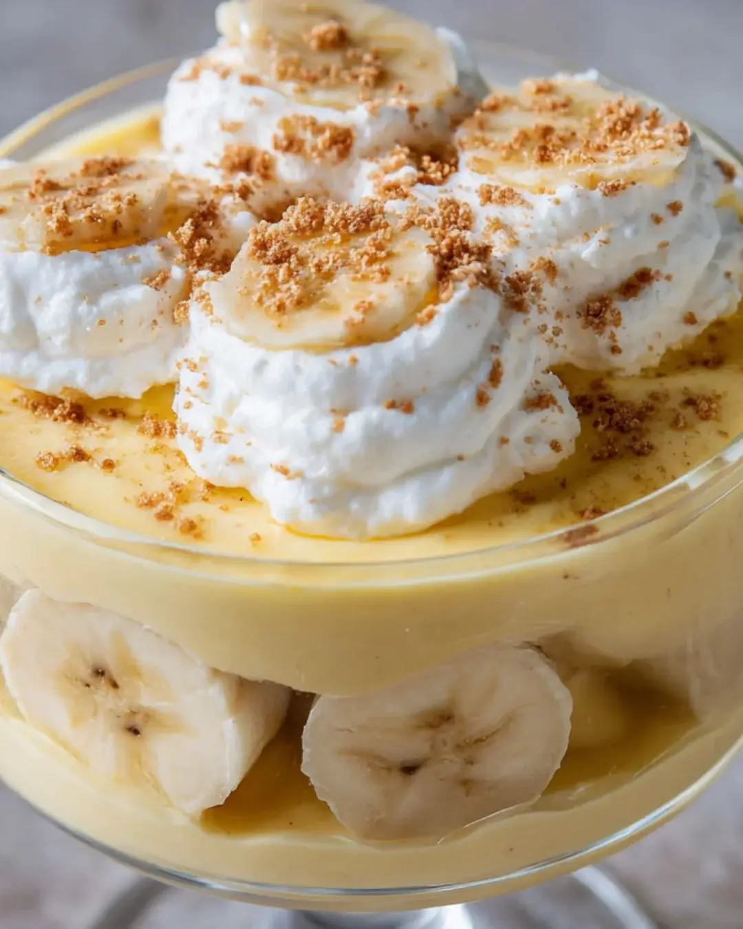Creamy Banana Delight is a simple no-bake treat that combines layers of bananas, vanilla pudding, and whipped topping for a delicious dessert.