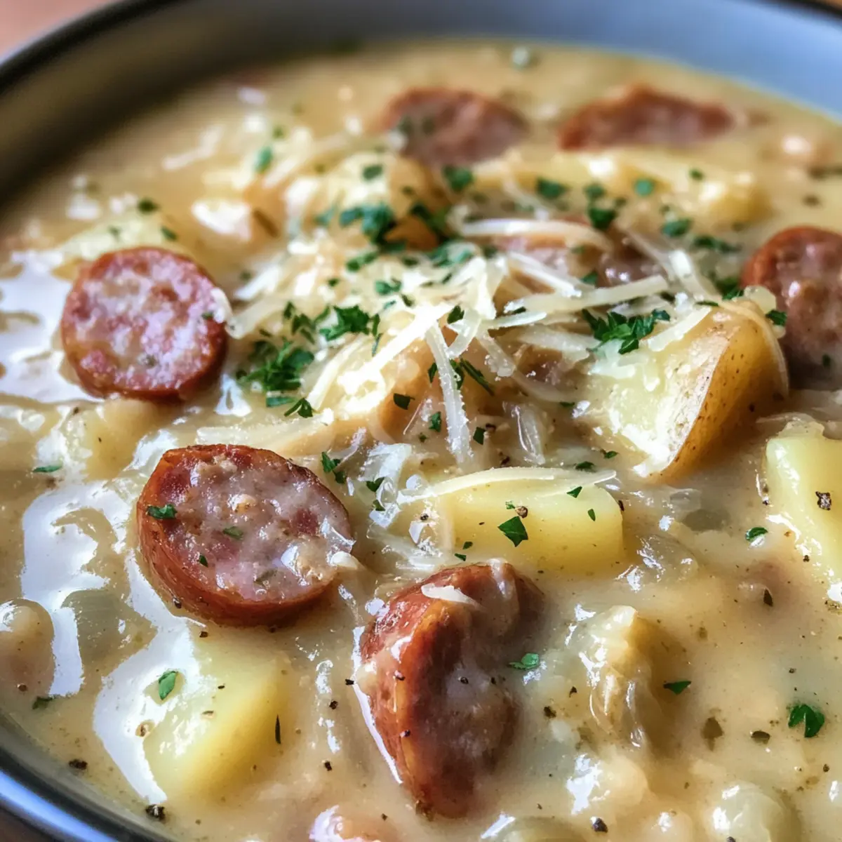 - Temperature Control: Be cautious not to boil the soup after adding cheese to maintain a smooth consistency in your Creamy Sausage, Potato and Sauerkraut Soup.