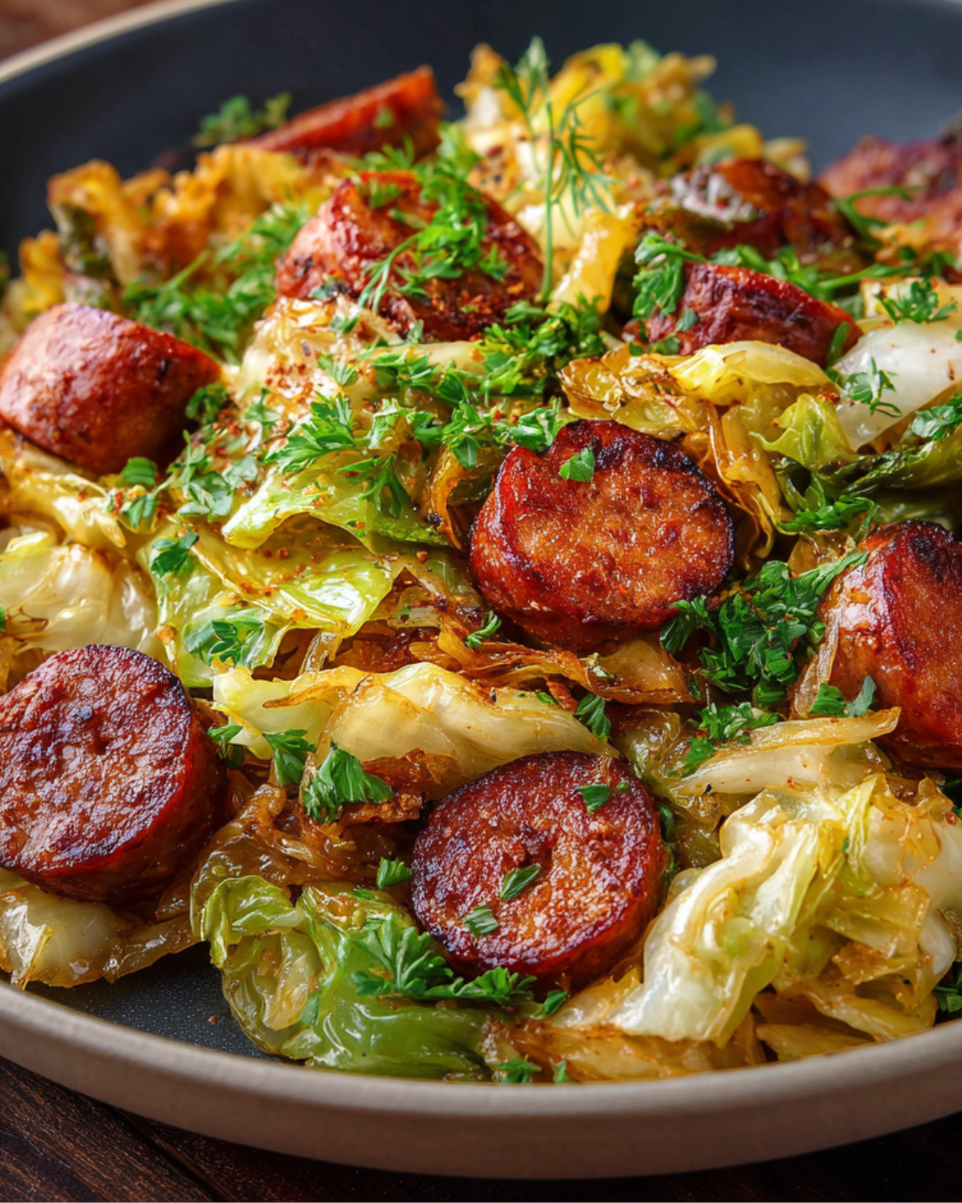 Crispy Fried Cabbage with Sausage is a quick and delicious dish that combines the savory flavors of smoked sausage with tender, slightly crispy cabbage, making it a perfect meal for any day.
