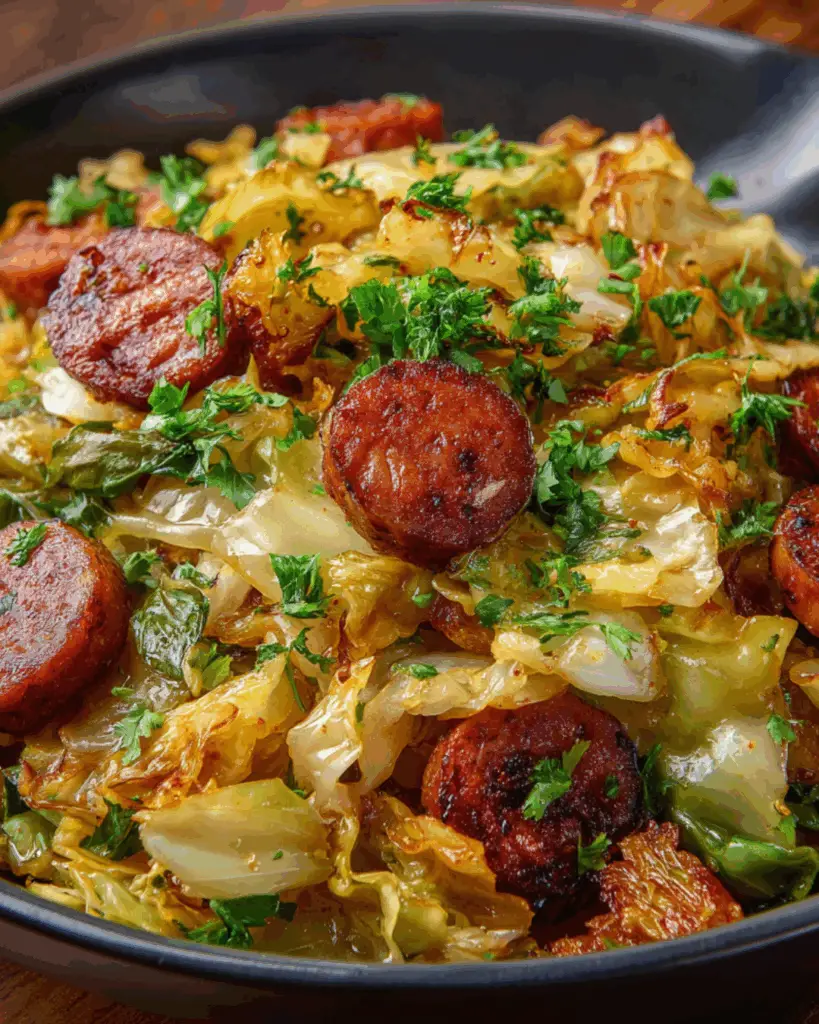 PrintCrispy Fried Cabbage with Sausage: A Quick Delight!