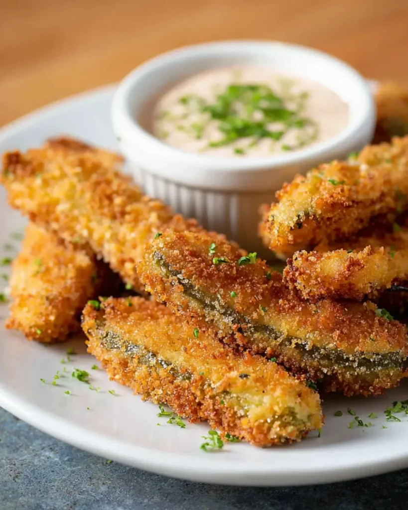- Cheesy Pickle Spears: Mix grated Parmesan cheese into the breadcrumb coating for a savory twist.