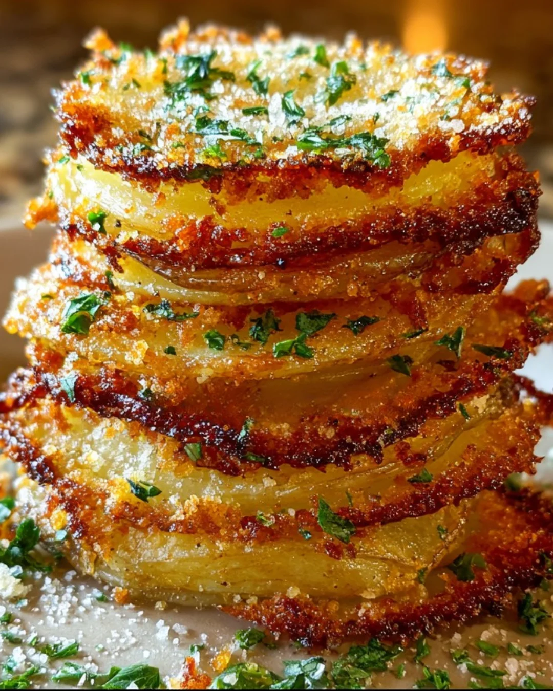 Crispy Parmesan Potato Stacks are a delicious and visually appealing side dish that will impress your guests with their golden brown and crispy texture.