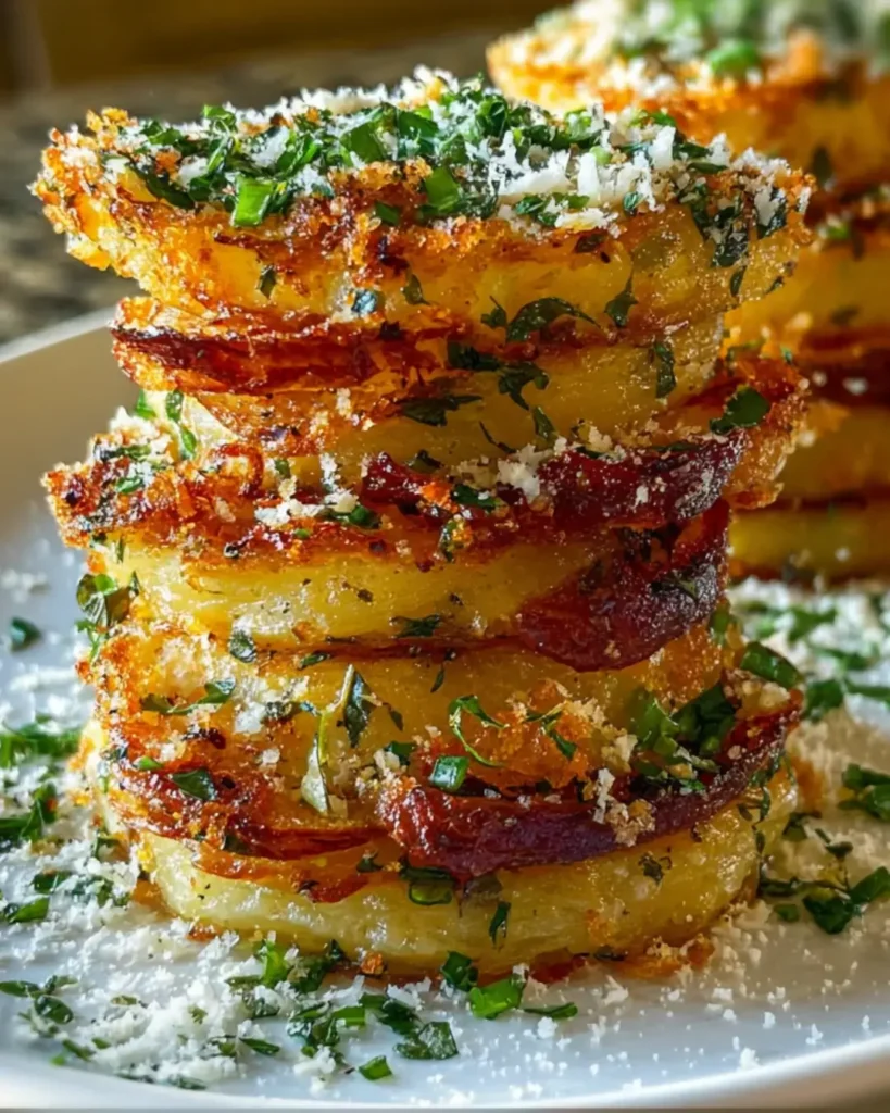 Creating Crispy Parmesan Potato Stacks is more than just cooking; it’s about bringing joy to the table. The golden, crispy layers and cheesy goodness are sure to spark smiles and compliments from your guests. Each bite is a delightful crunch, a perfect blend of flavors that can elevate any meal. Whether it’s a casual family dinner or a festive gathering, these stacks are a showstopper. So, roll up your sleeves, embrace the process, and enjoy the satisfaction of serving a dish that’s as fun to make as it is to eat. Your culinary adventure awaits!