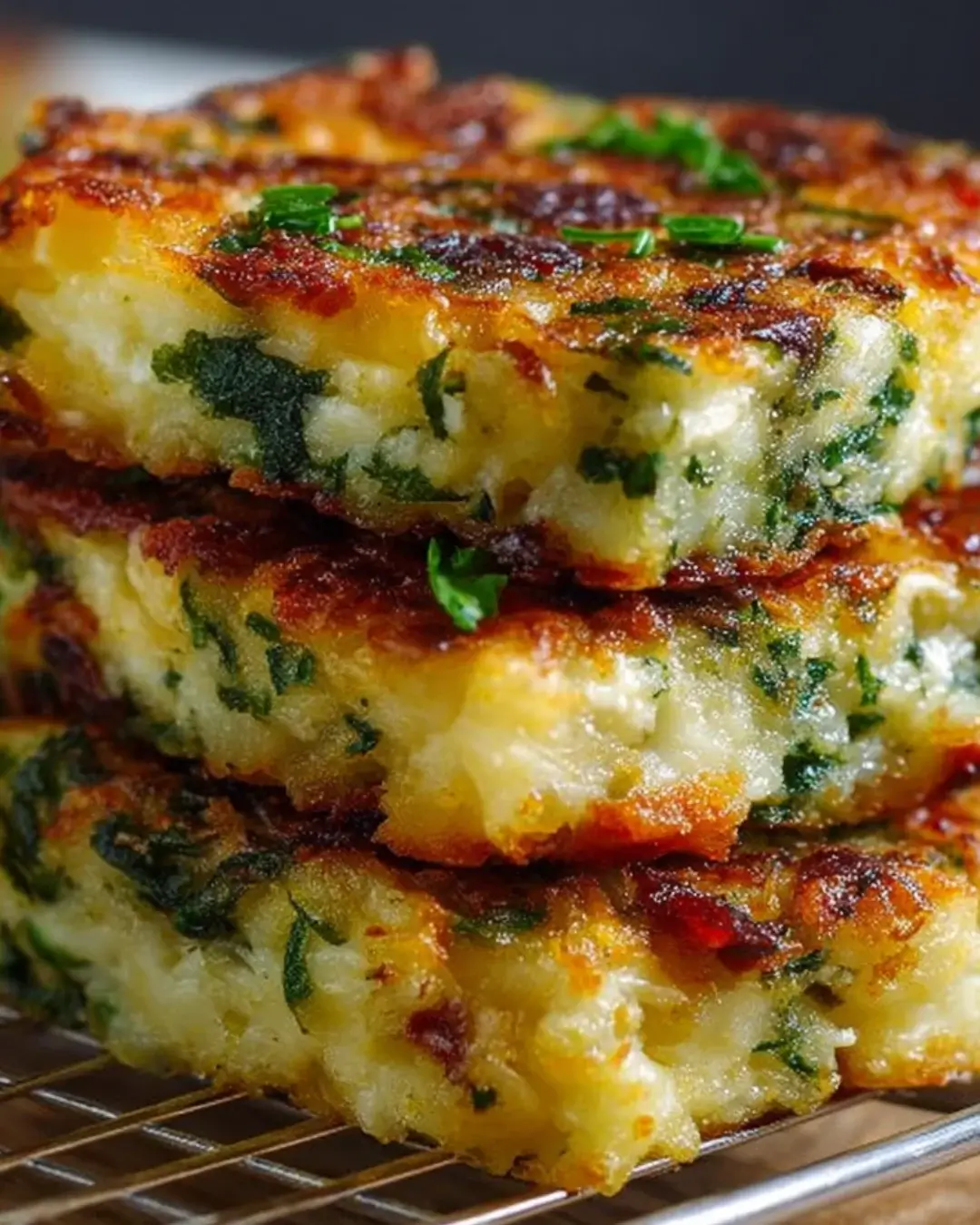 Crispy Potato Cakes are delicious and easy-to-make patties made from mashed potatoes, cheese, and seasonings, perfect for a snack or side dish.