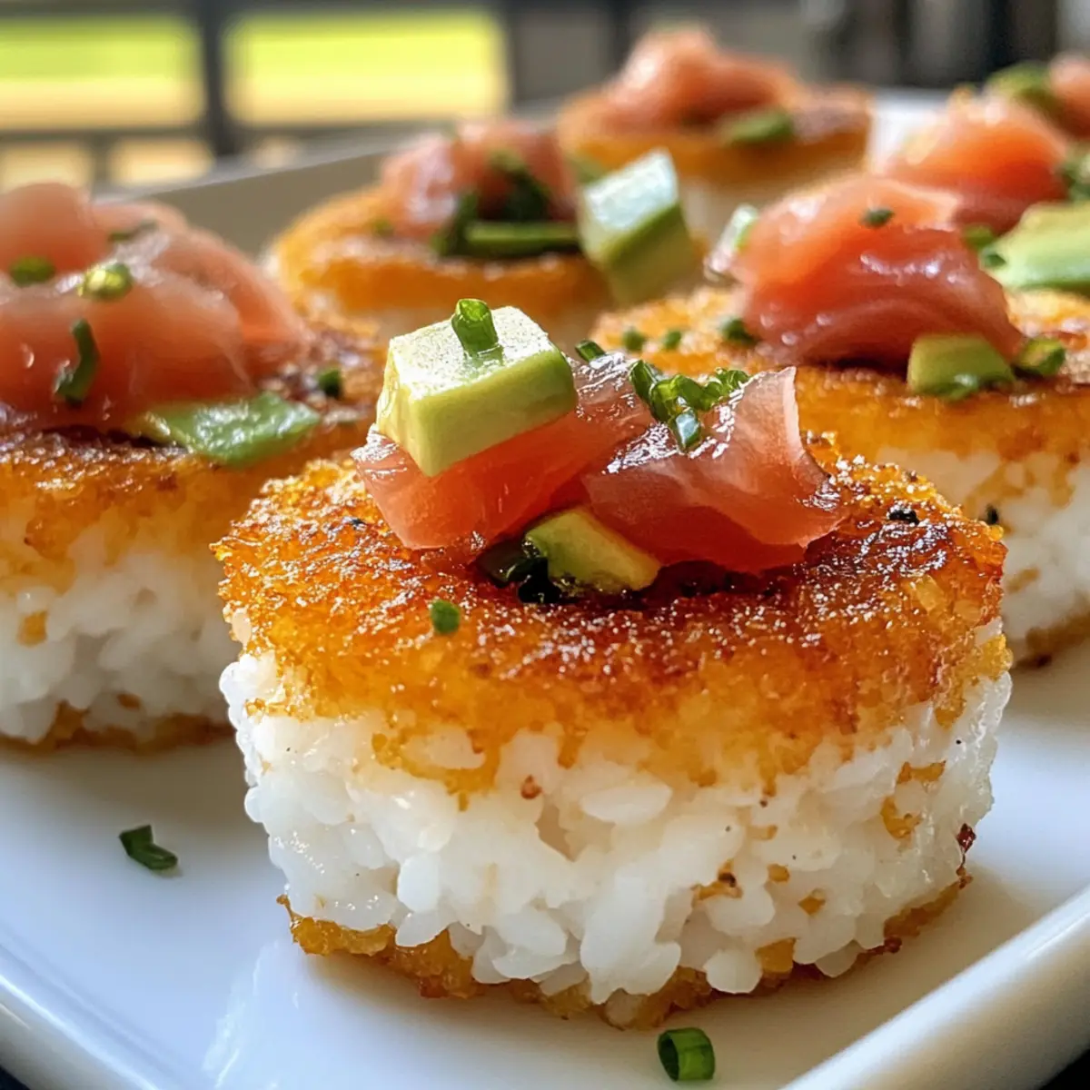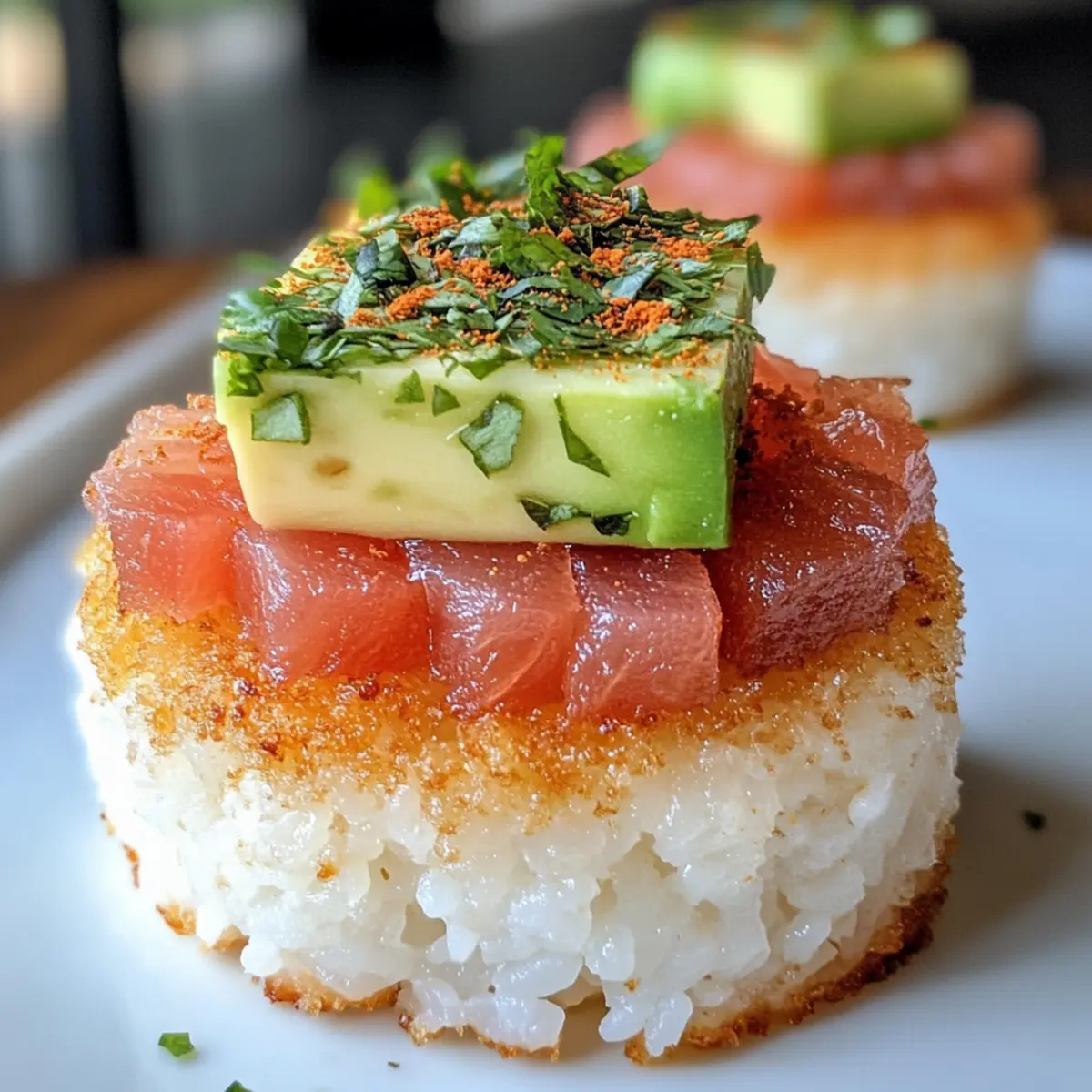 Spicy Tuna: Top with spicy tuna for a fusion delight that adds a kick and makes for an impressive appetizer. Just envision the tantalizing combination of crunchy cake and flavorful tuna!
