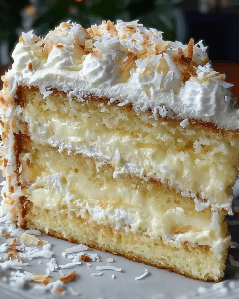 PrintDreamy Coconut Cream Cake: A Slice of Paradise Awaits!