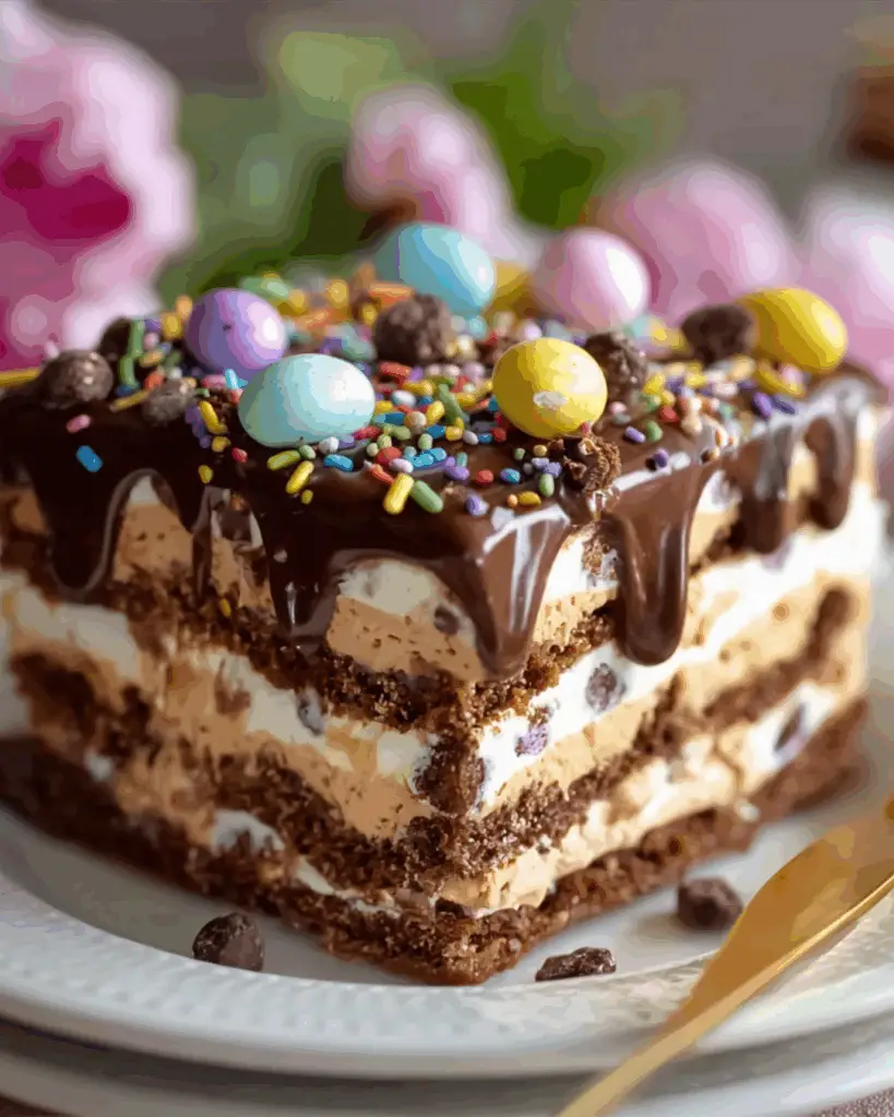 Easter Chocolate Lasagna is a delightful layered dessert featuring a creamy filling, chocolate pudding, and festive candy toppings, perfect for celebrating the Easter holiday.