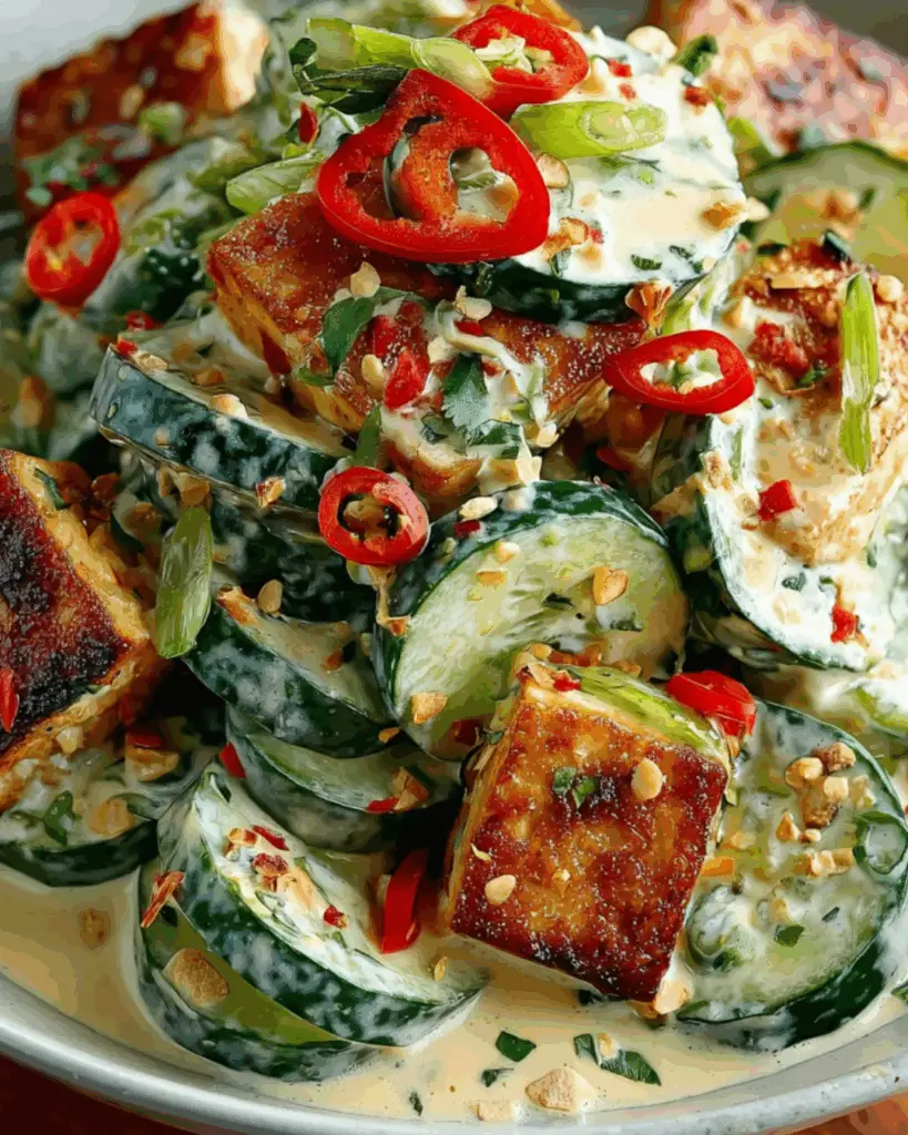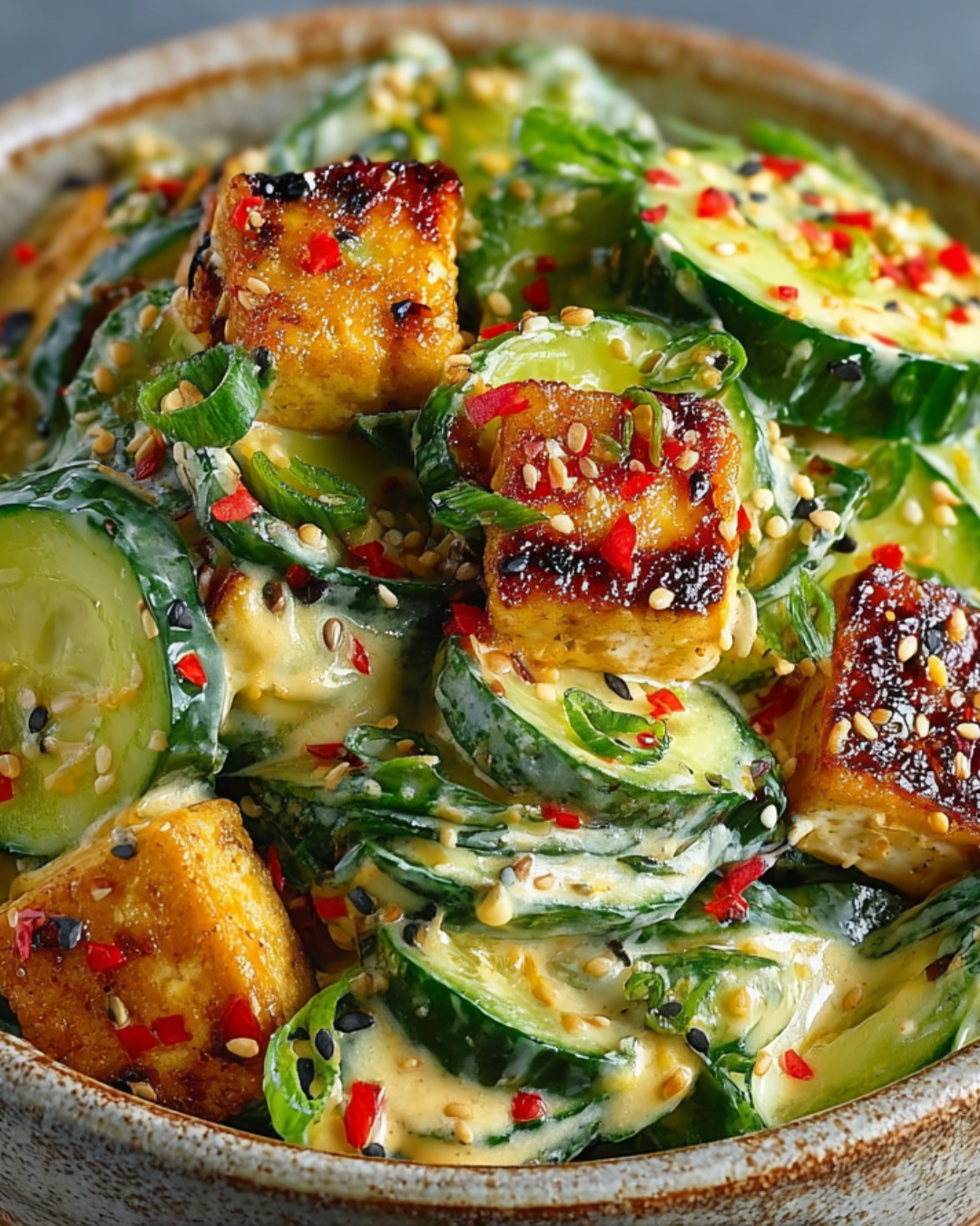 PrintEasy Creamy Asian Cucumber Salad with Crispy Tofu: Discover This Refreshing Recipe!